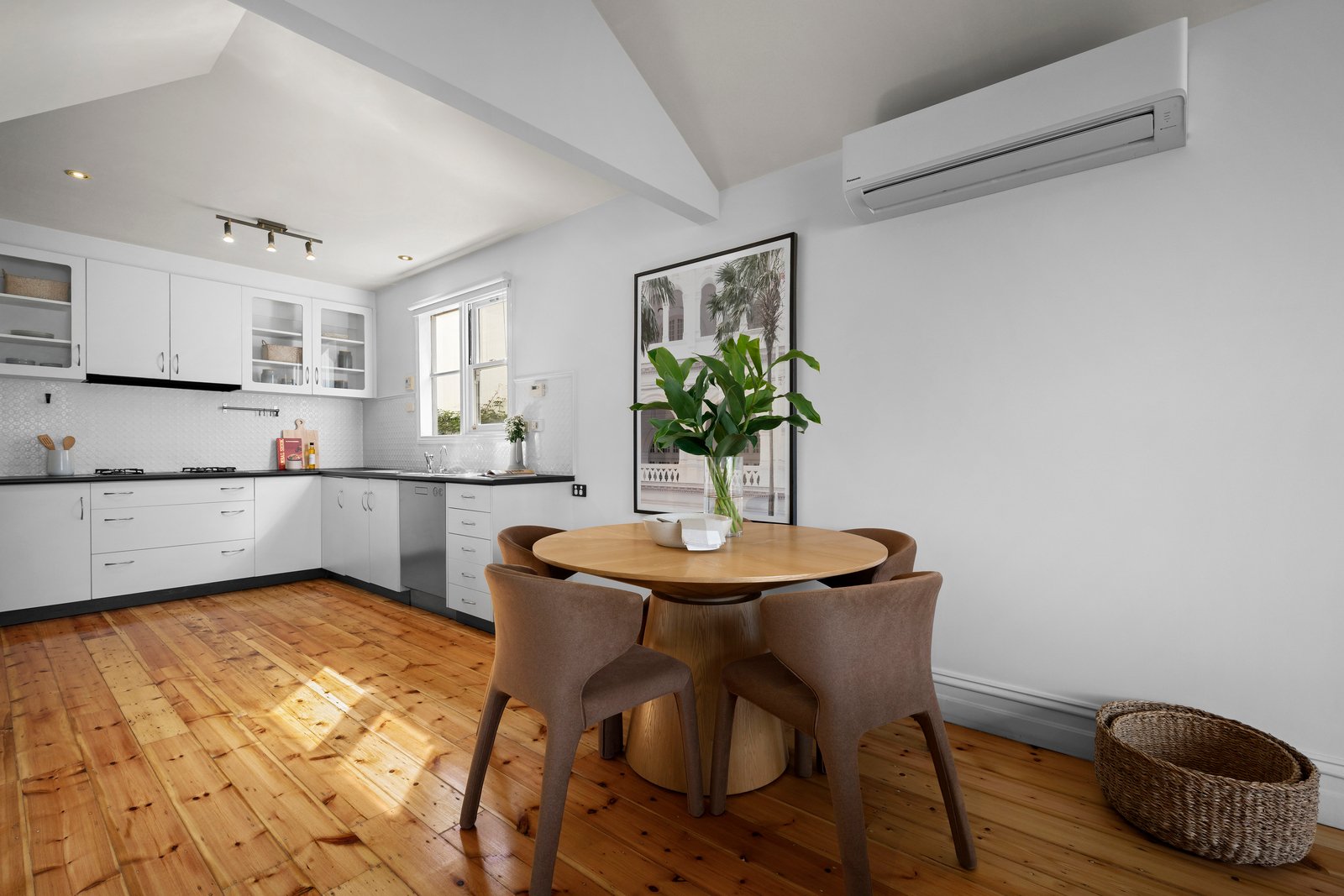Traditional Baltic pine floors flow through the wide entrance hall to a formal living room, two double bedrooms with fireplaces, and bathroom while upstairs there is a 3rd bedroom with powder-room and built in robe. Vaulted ceilings add a wonderful sense of space to the generous living and dining room which is superbly catered to by a well-appointed kitchen with European appliances. Double doors allow living to flow out to a private easy-care garden.