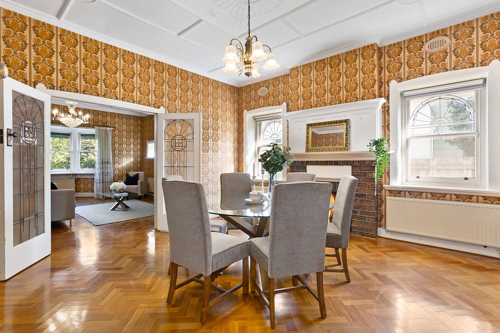 Soaring, decorative ceilings and attractive timber parquet floors complement the generous sizing of the lounge with open fireplace and deep bay window, dining room (OFP), bright kitchen/meals and rear family room.