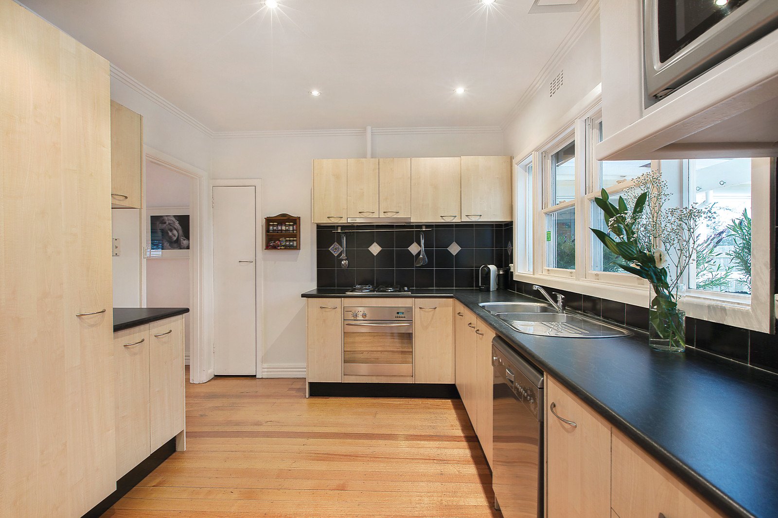 Sitting behind a picket fence this pretty cream and white trimmed timber family home creates an immediate impression with its vine clad bullnose verandah and bay front window introducing a stylishly updated interior featuring polished timber floors, three bedrooms, main with WIR and ensuite, sparkling bathroom, generous sitting and dining room combined with double doors to the north-facing verandah, smart pale timber kitchen with stainless steel appliances and adjacent laundry & WC, plus an informal living room overlooking a sandstone paved, covered dining area, deck and private garden with cubby house. Other features include Plantation shutters, ducted heating, R/C air conditioners (main bedroom, sitting & informal living), tandem carport & garage/storage.