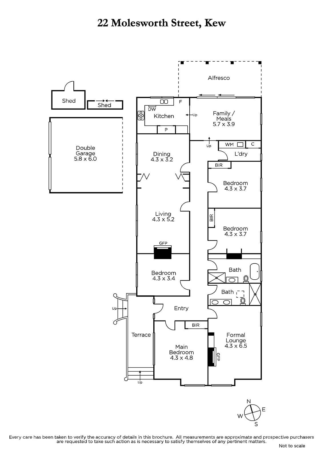 The accommodation features a polished timber hallway, gracious formal sitting and adjacent dining room and informal living or study, four bedrooms, two travertine tiled bathrooms and a laundry. Through to the rear family room with wide floorboards and well-appointed kitchen with CaesarStone bench-tops and Smeg stainless steel appliances flowing through floor-to-ceiling sliding glass doors to a verandah and paved outdoor entertaining area in a sunny, private garden. Other features in this superb home include R/C air conditioner (family room), ducted heating, gasFPs (one marble), garden storage sheds, remote double garage and off-street parking with access from Barry Street