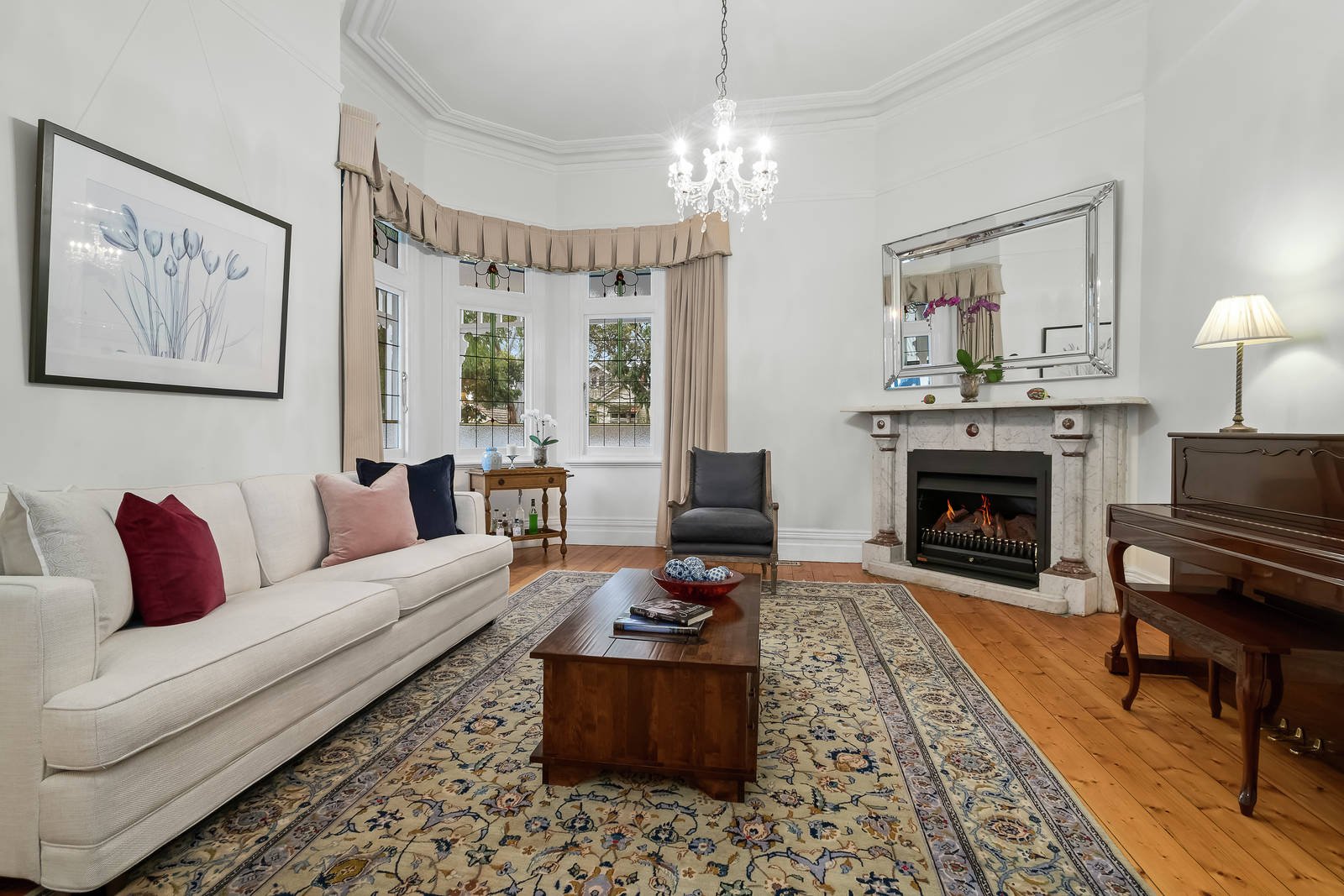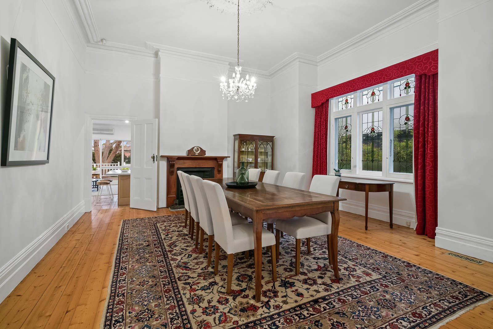 Situated on a substantial allotment measuring approximately 859sqm approx., an immediately appealing Edwardian façade introduces the light filled and generously proportioned interiors, complete with a host of preserved period features including Baltic pine floors, ultra high decorative ceilings, timber fretwork and coloured leadlight glass. Evoking a sense of grandeur, the north facing formal living room features a marble gas fireplace, while an equally impressive formal dining space showcases a timber open fireplace. A well appointed kitchen boasting ample storage and high end appliances including Ilve gas cooktop and oven plus a Miele dishwasher, adjoins a relaxed family living space accentuated by an abundance of glass providing leafy outlooks. Outside, an elevated deck surrounded by lush established gardens presents the perfect space for dining and entertaining.