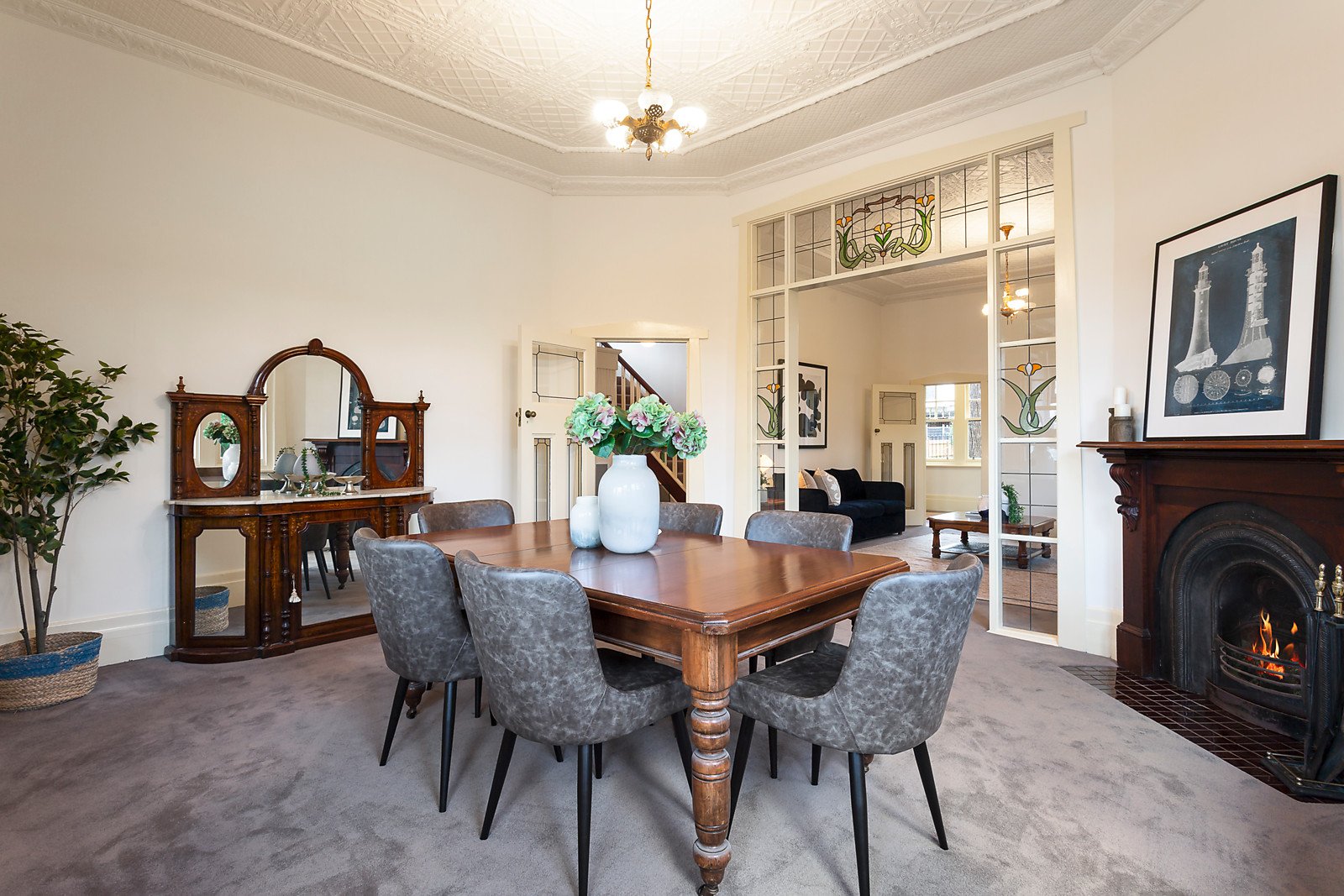 Superbly positioned on a substantial allotment of approx. 1153sqm in the sought-after Windsor Park estate, this extensive family home is brimming with light and space, captivating traditional charm and versatile indoor and outdoor living. Stunning pressed metal ceilings and original fireplace features adorn the multiple living zones, including a huge open-plan kitchen, meals and family room with polished timber floors, separate formal dining and adjacent formal lounge. Immaculately presented and enviably spacious, the elaborate ground floor also boasts a large study or extra bedroom, full bathroom with separate WC, shower and spa bath, and sizeable laundry with ample storage. Expansive north-east facing gardens wrap around this impressive residence, encompassing a paved alfresco dining courtyard with open-close vergola, leafy deck area and an inviting in-ground swimming pool. Upstairs, a wonderful family sanctuary awaits, boasting four large bedrooms with BIRs and dual-access family bathroom, highlighted by an enormous master suite with private balcony, extensive robes and adjacent reading nook. This warm and welcoming home has everything a large and busy family could need including ducted heating, bedroom ceiling fans, Ilve and Bosch appliances and double carport, with easy access to Surrey Hills and Mont Albert train stations, Hamilton Street shopping and cafes, Surrey Park and an array of quality local schools.