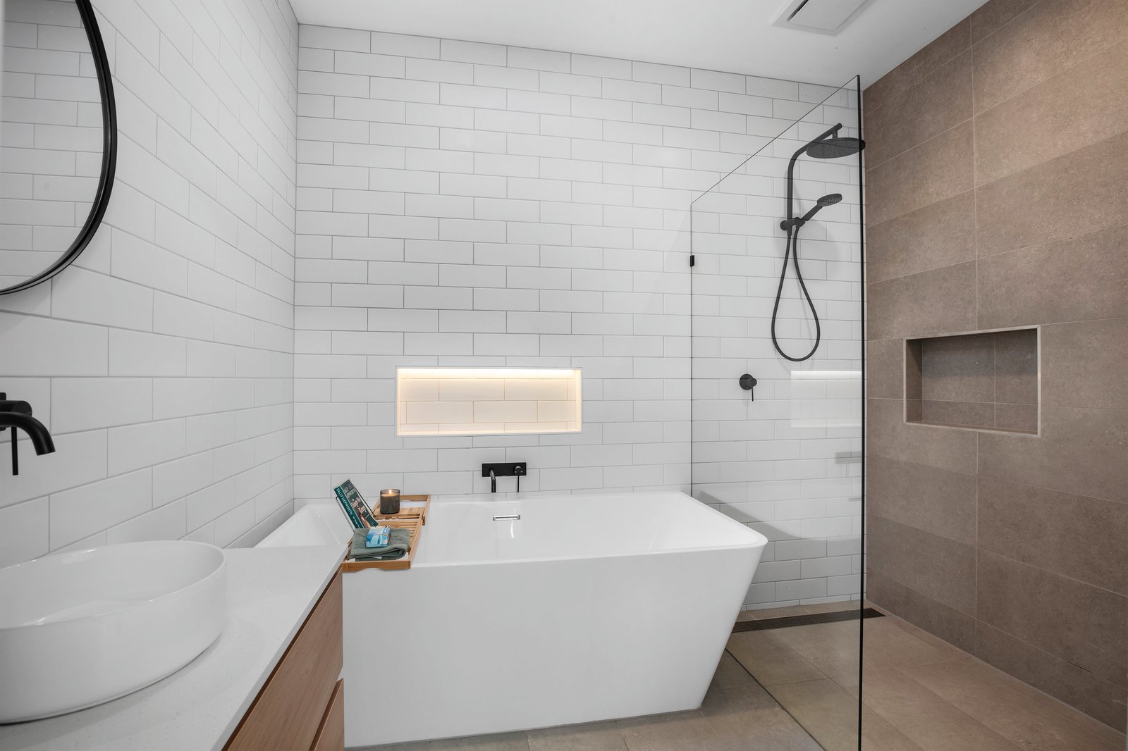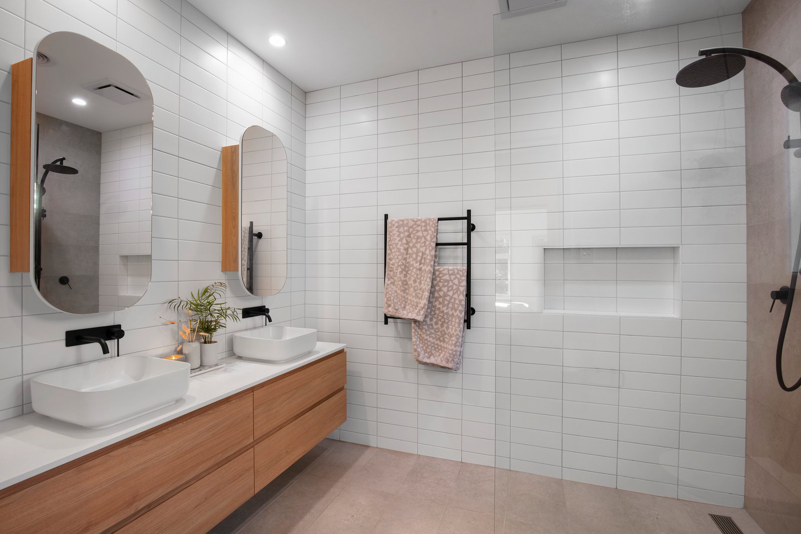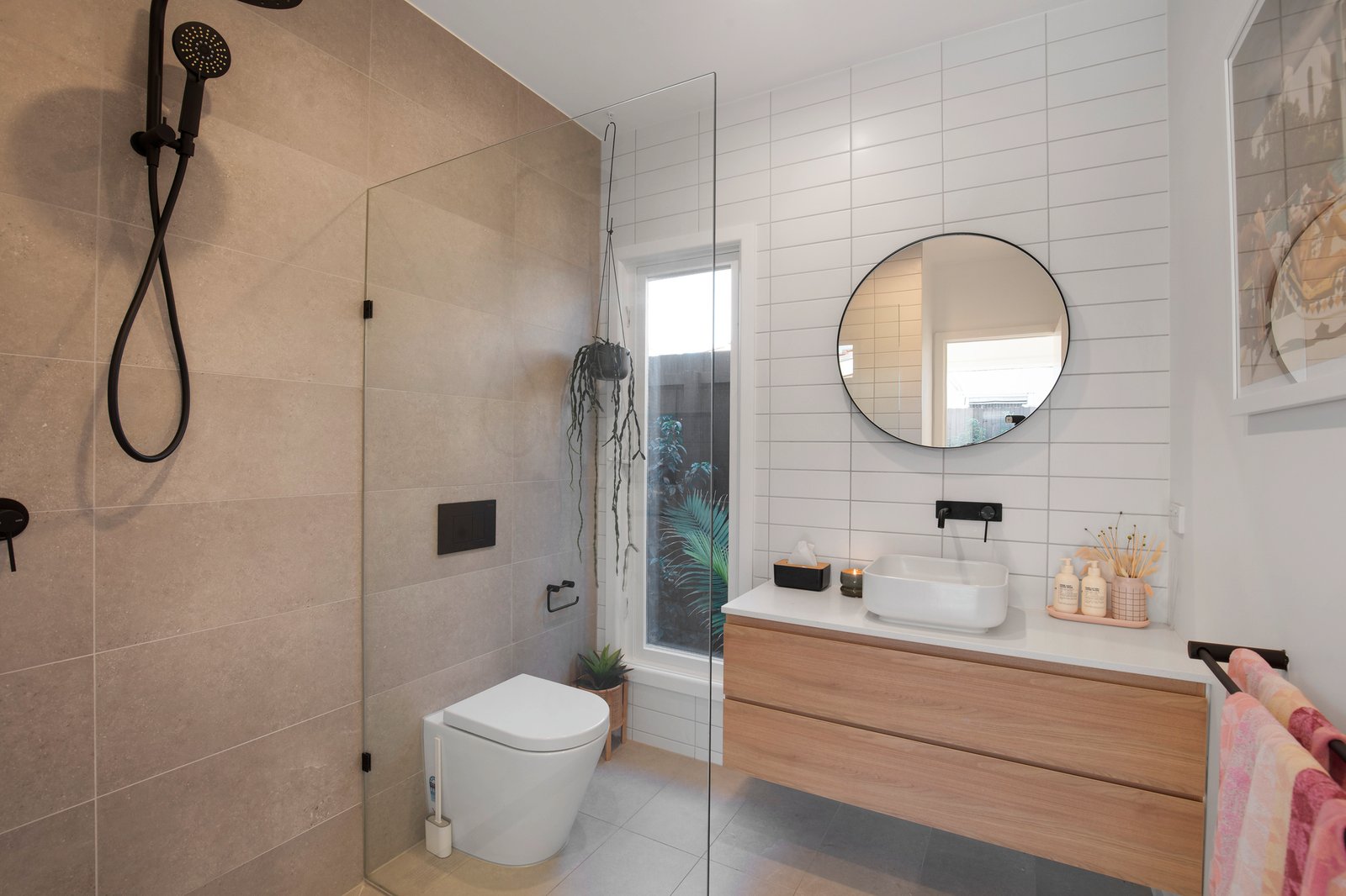 A luxurious main bedroom comes complete with generous walk-in robes, an ensuite bathroom with heated floors and towel rail, while a separately zoned retreat serves two robed bedrooms, a second lounge and bathroom, providing good privacy and plenty of space for growing families. Additional features include the chic bathrooms, ducted heating and cooling, and 22 solar panels to minimize the cost of rising utilities.