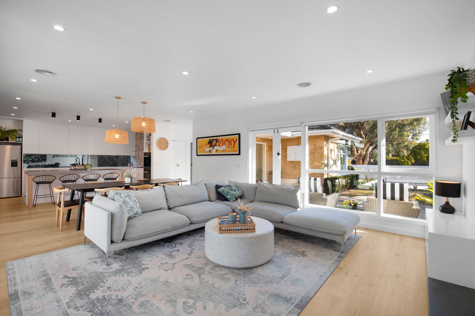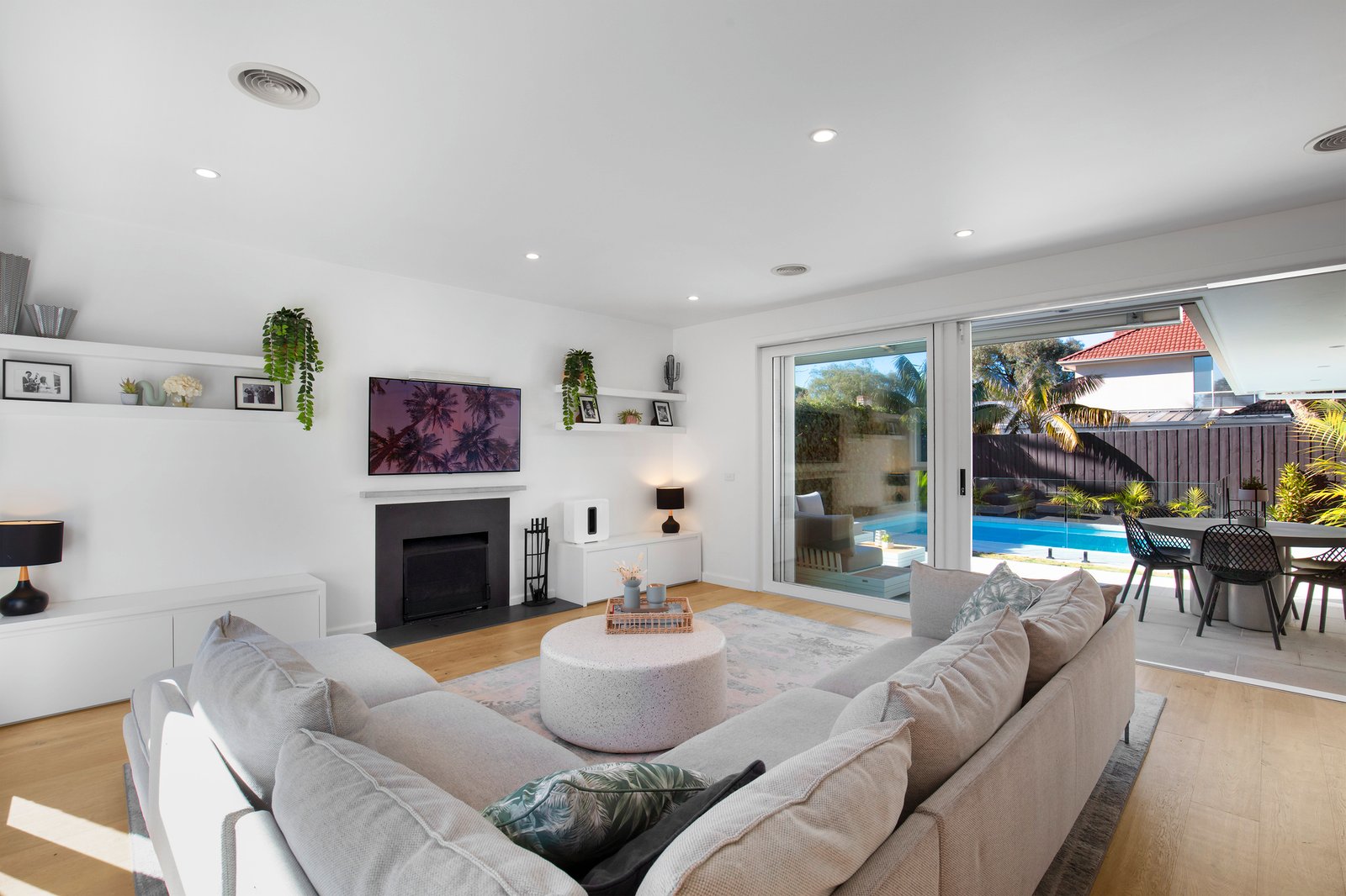 Iconic mid-century foundations have been completely transformed by way of a brand-new extension and renovation into this single-level, Palm Springs-style haven. In a compelling blend of light-filled spaces and zoned family living, the impeccable garden setting and sparkling freshwater pool provide the backdrop for a vibrant undercover alfresco area and terrace, creating the ideal venue for easy entertaining. Imagine long laidback summers and an easy day-to-day lifestyle in this tranquil cul-de-sac locale, just minutes from the beach.