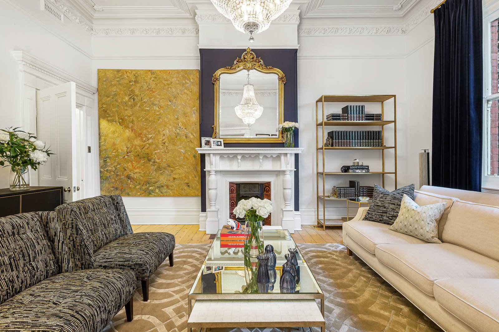 With no expense spared, the renovation highlights the home's exceptional period character alongside unfettered modern luxury with a superb synergy between the past and the present. Staged beneath 3.7 metre ceilings with grand roses, elaborate cornices, open fireplaces and painstakingly restored Baltic floorboards, the home's exceptional pedigree is complemented by the finest modern appointments.