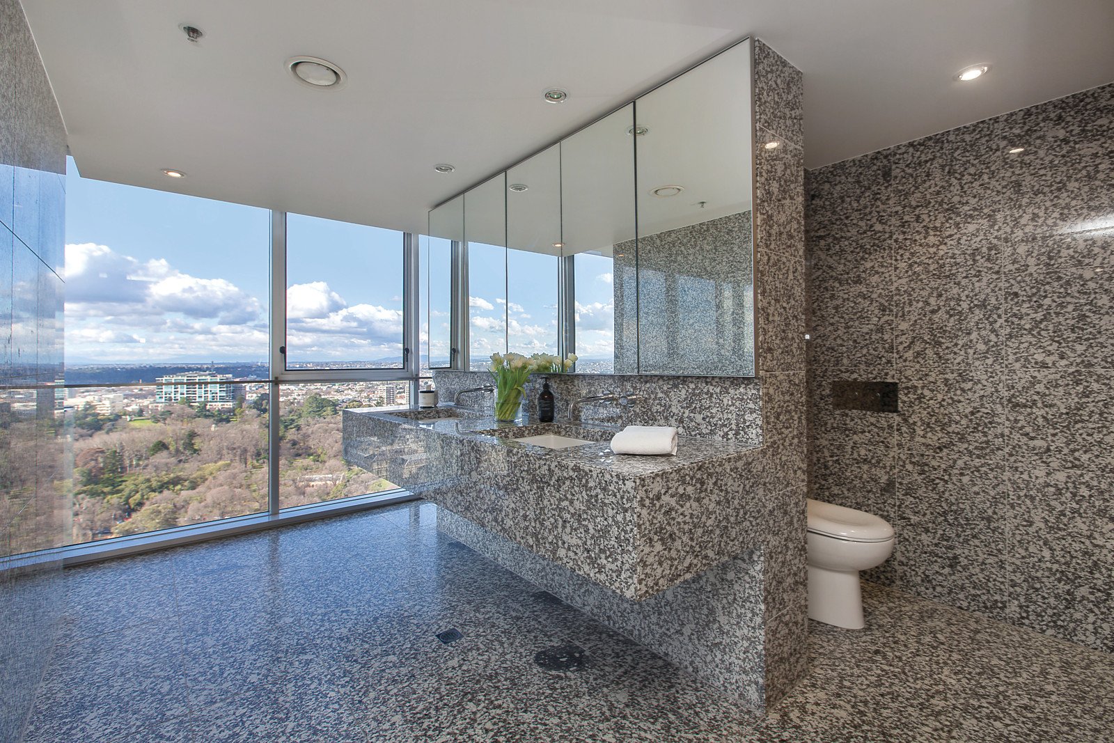 Experience the ultimate in prestige city living, with 270-degree views, a 22nd-floor vantage point and every luxury. Located in the exclusive Philadelphia tower, this three-bedroom penthouse is tailormade for those who appreciate fine design and architectural excellence. The northeast-facing position opposite the Treasury Gardens offers uninterrupted views as far as the Dandenong Ranges and across the northern and eastern suburbs. Melbourne landmarks are on show from inside and outside, with views of Parliament House, the MCG, AAMI Stadium, Tennis Centre and St Patrick's Cathedral. Come home to one of Philadelphia's largest residences, with a vast living zone, luxe Miele kitchen with extensive storage, three bathrooms, separate laundry, and garaging for two cars. Custom-designed fitout features timber floors and feature walls, terrace access from the superb main bedroom suite, integrated speakers, concierge services, and impeccable refinement. Lifestyle living at the Paris End of the CBD includes lift access to the rooftop pool, undercover outdoor living, and security entry from Spring Street and Flinders Lane. The exceptional location on the edge of the city lets you experience the best of Melbourne on a daily basis, with restaurants, designer shopping, theatres and public transport metres away. Stroll through the Treasury and Fitzroy Gardens to East Melbourne, walk to work and sports events, and delight in living in such an exclusive location. A rare opportunity to acquire one of the city's most spacious and stylish residences.