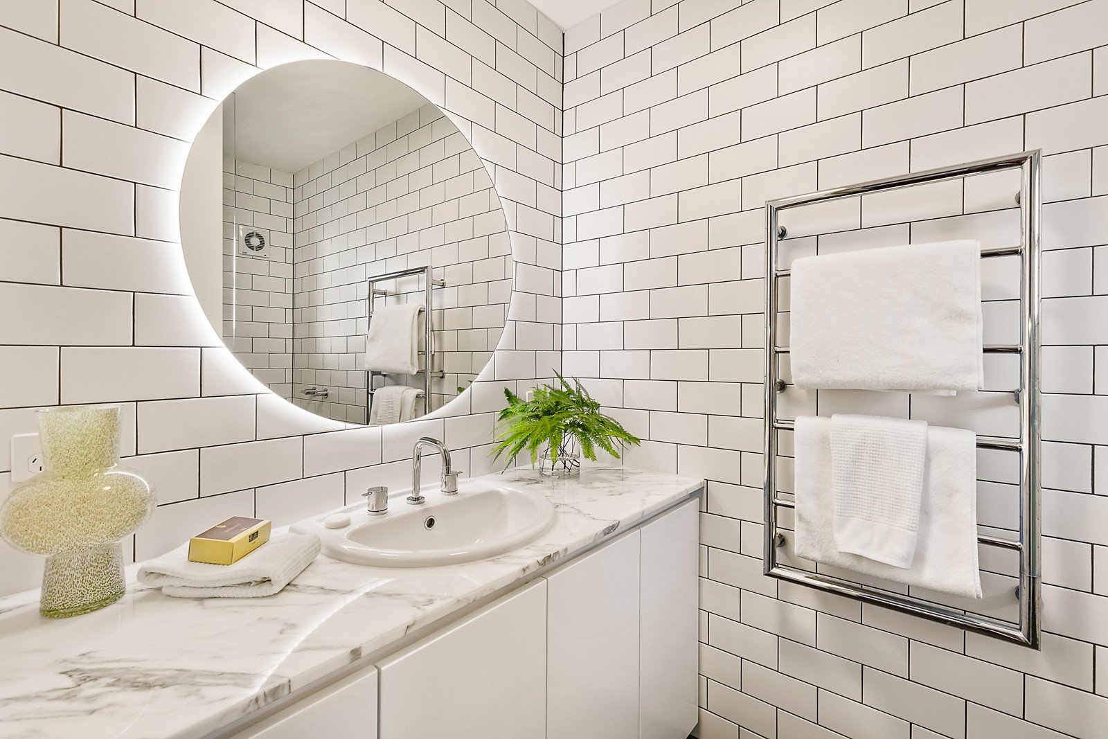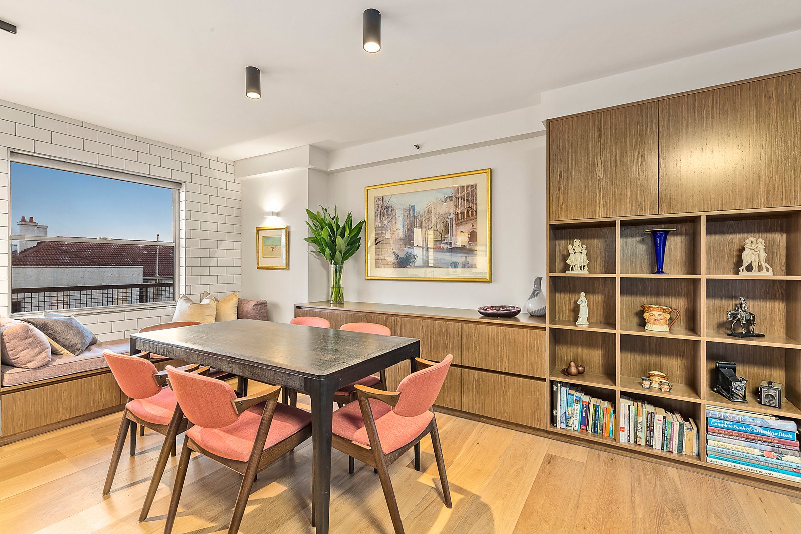 Wide oak floors add a contemporary appeal to the entrance hall and light-filled living and dining room with a superb gourmet kitchen boasting European appliances, integrated fridge/freezer and marble benches. Bathed in northern light and fitted with bespoke joinery, the living spaces open to a full width north-facing covered balcony overlooking the Botanic Gardens. The two bedrooms with built in robes share a stylish bathroom with separate powder-room.