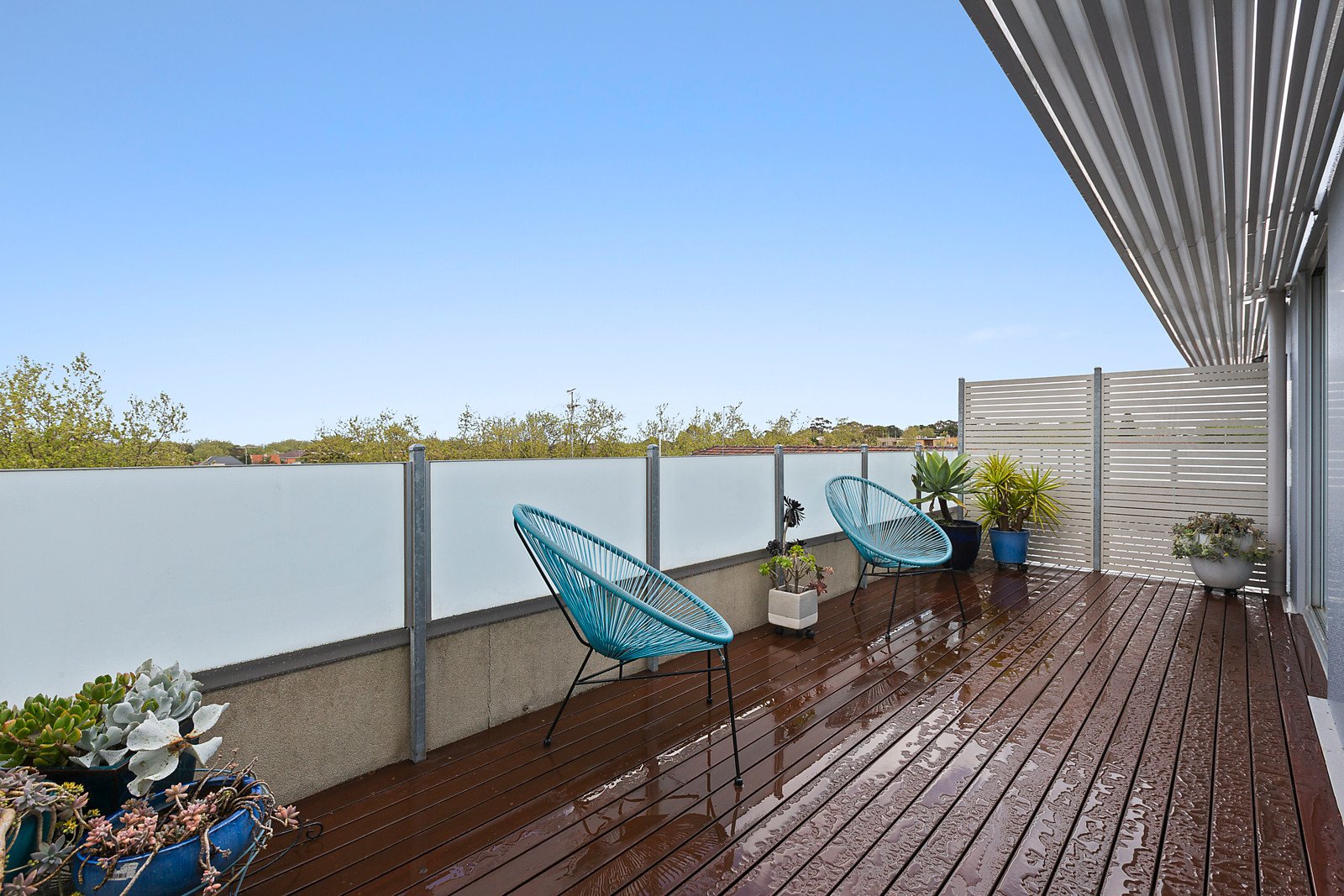 A rare discovery, peacefully set amidst the leafy tranquillity of Elwood's coveted 'Poet's Corner', this large and light-filled two bedroom, split-level apartment combines the lofty feel of a townhouse with a privileged position atop this boutique block of contemporary sophistication. Distinguished also by two outdoor living zones, views to the towers of the city skyline, as well as over Elwood and two secure parking spaces, this is an extraordinary inner-bayside offering.