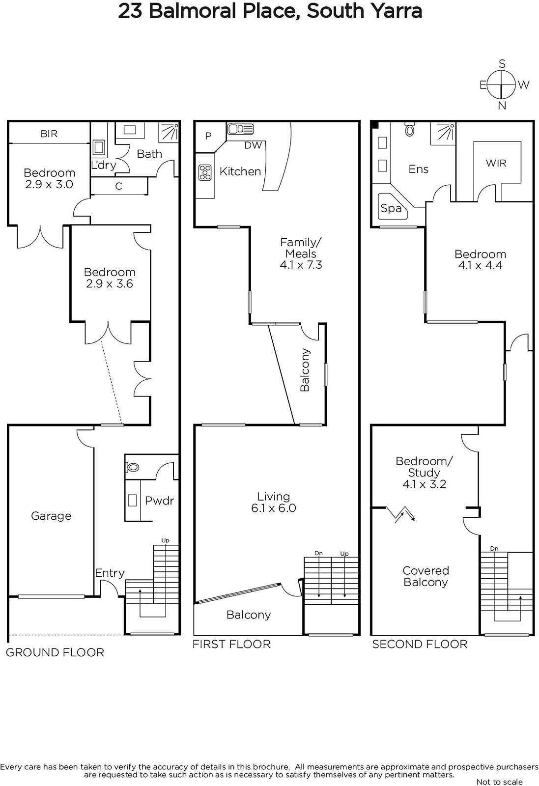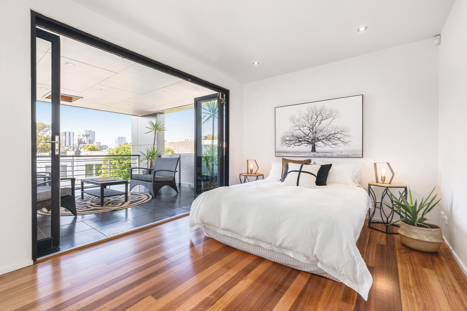 Floating timber stairs lead up to a generous, light-filled sitting room with north-facing balcony and a sensational separate living and dining room served by a gourmet granite kitchen. Two spacious bedrooms on the ground level with a stylish bathroom and powder-room open to a large central courtyard. Enjoying its own space on the top level, the sumptuous main bedroom with walk in robe and lavish en-suite with spa-bath is accompanied by a study or 4th bedroom opening through bi-fold doors to a fabulous covered terrace offering wonderful city views.