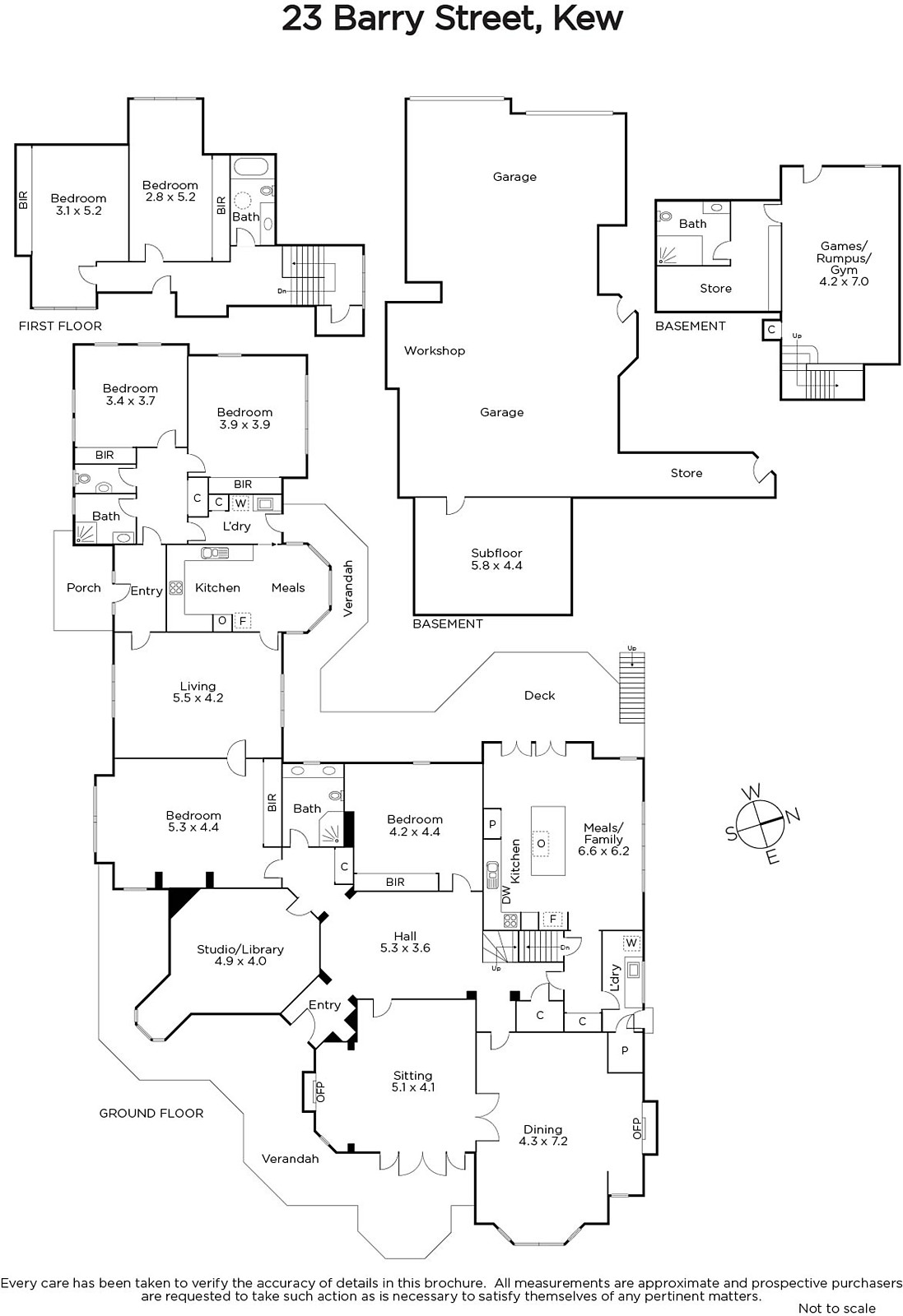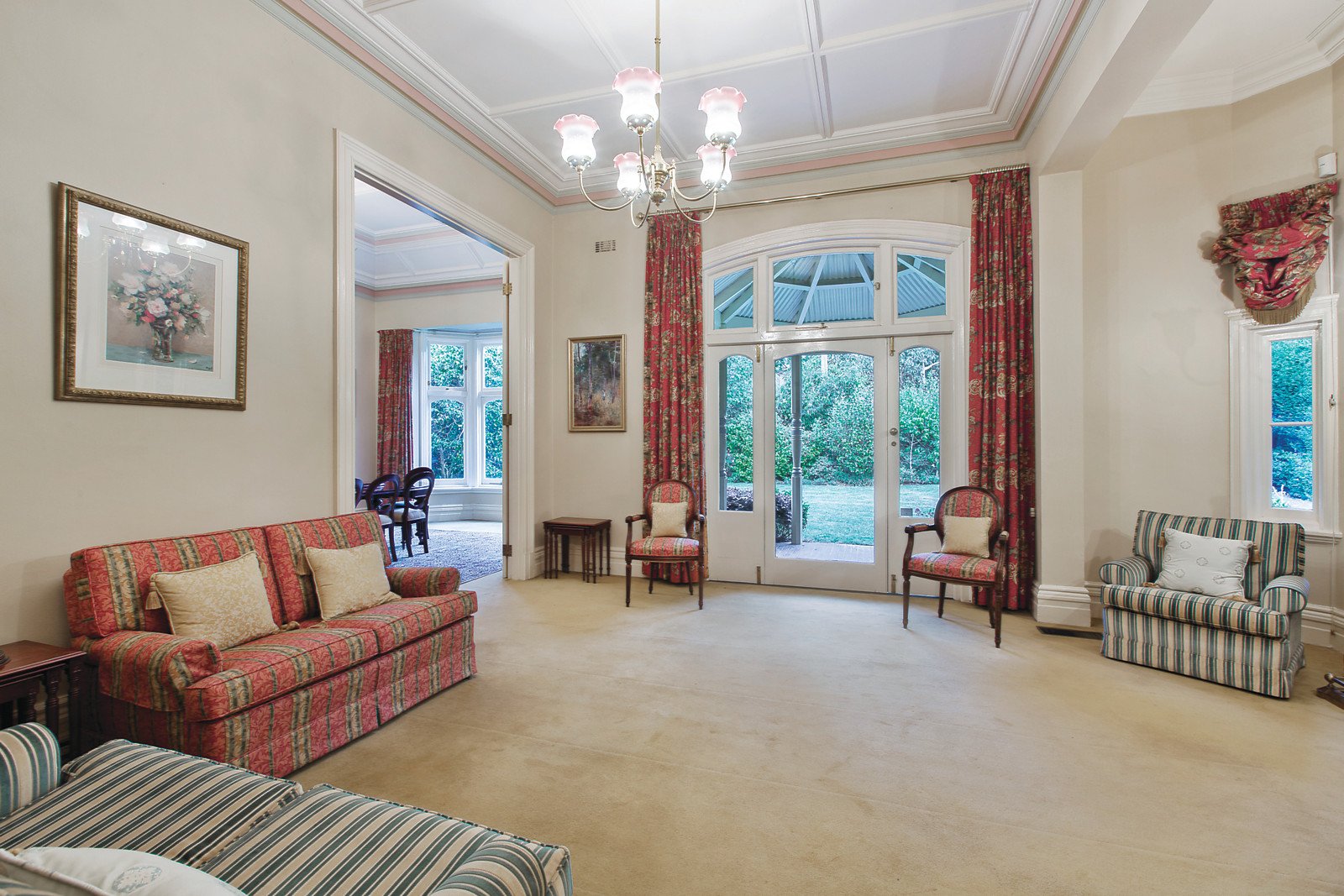 Generously proportioned rooms include: gracious entrance hall, elegant sitting room and adjoining separate grand formal dining room, well appointed modern kitchen, adjacent meals area and sunny family room opening to verandah / alfresco meals area, luxuriously large main bedroom, five further double bedrooms, charming study/library, four bathrooms, and a versatile rumpus/games room or gym.