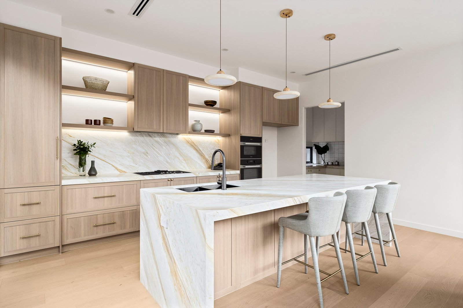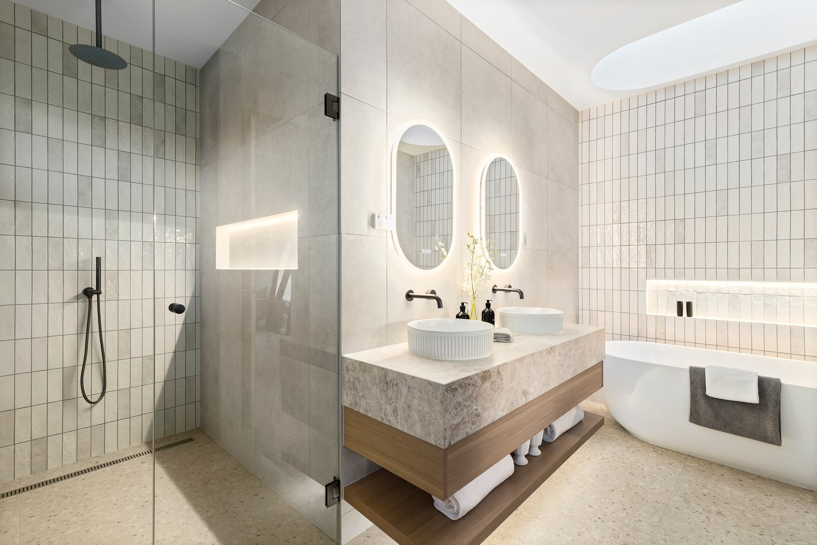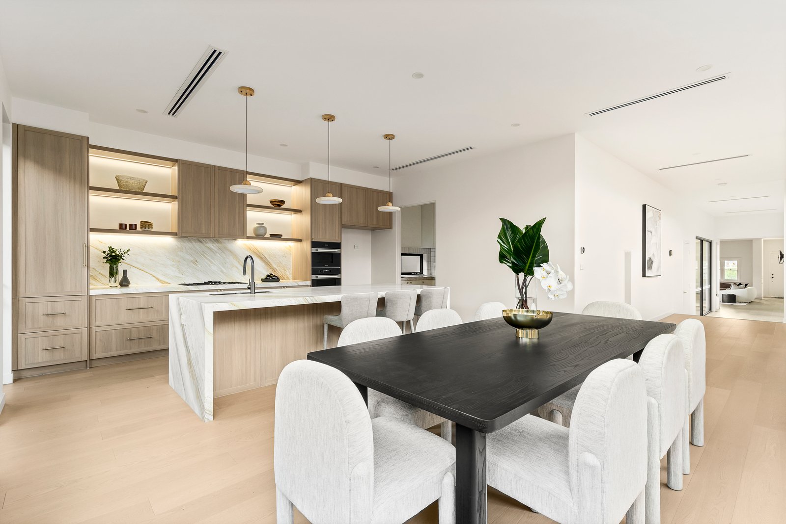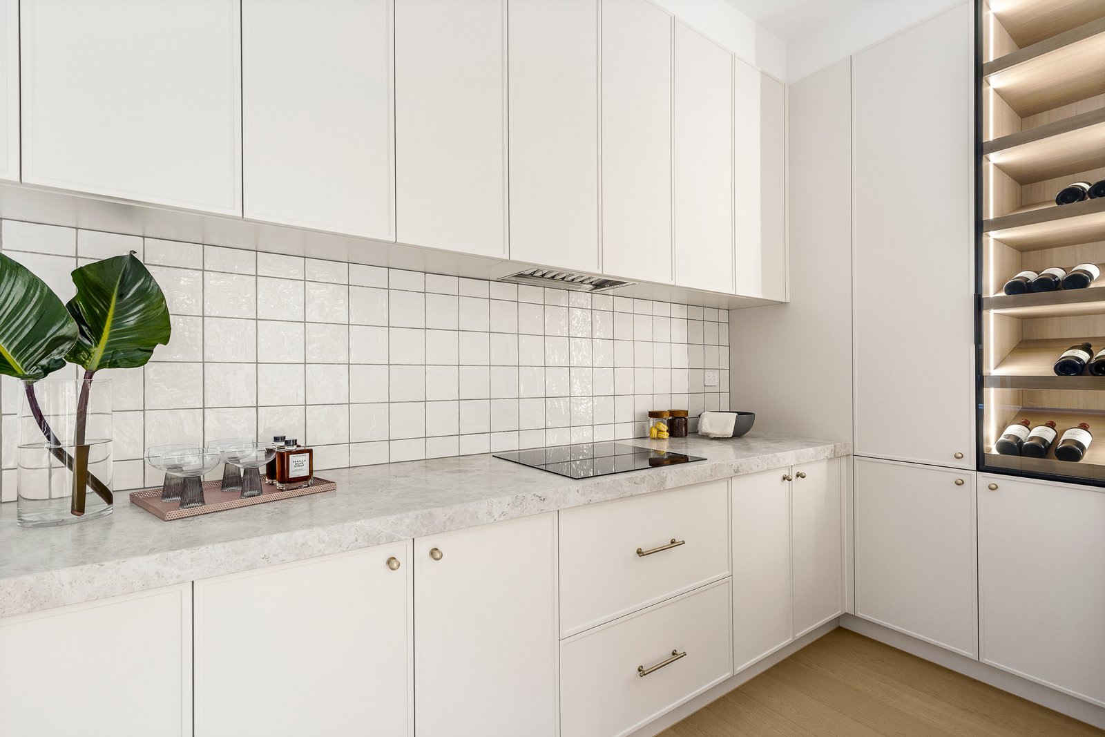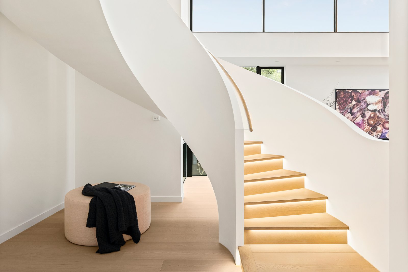 Behind the traditional exterior profile, the extension has been impressively clad in striking brushed concrete for a sophisticated, tactile and durable finish. The imposing scale of the entrance hall and sitting room with an electric log fire is enhanced by the 3.3m ceilings. Oak floors flow through to a home office and to the palatial open plan living and dining room dramatically set beneath a soaring double height void promoting year-round natural light flow. Glass sliders open to a large undercover al fresco terrace and the picturesque heat pump self-cleaning pool. Beautiful Venus Gold marble makes a bold statement in the premium kitchen appointed with a full suite of Miele appliances, bespoke cabinetry and a butler’s pantry/2nd kitchen with wine display. A guest bedroom with designer en suite and walk in robe is conveniently on the ground level while a sculptural curved staircase leads up to three additional bedrooms with robes and stylish en suites, a spacious retreat and the sumptuous main bedroom with lavish en suite, freestanding bath and walk in robes.