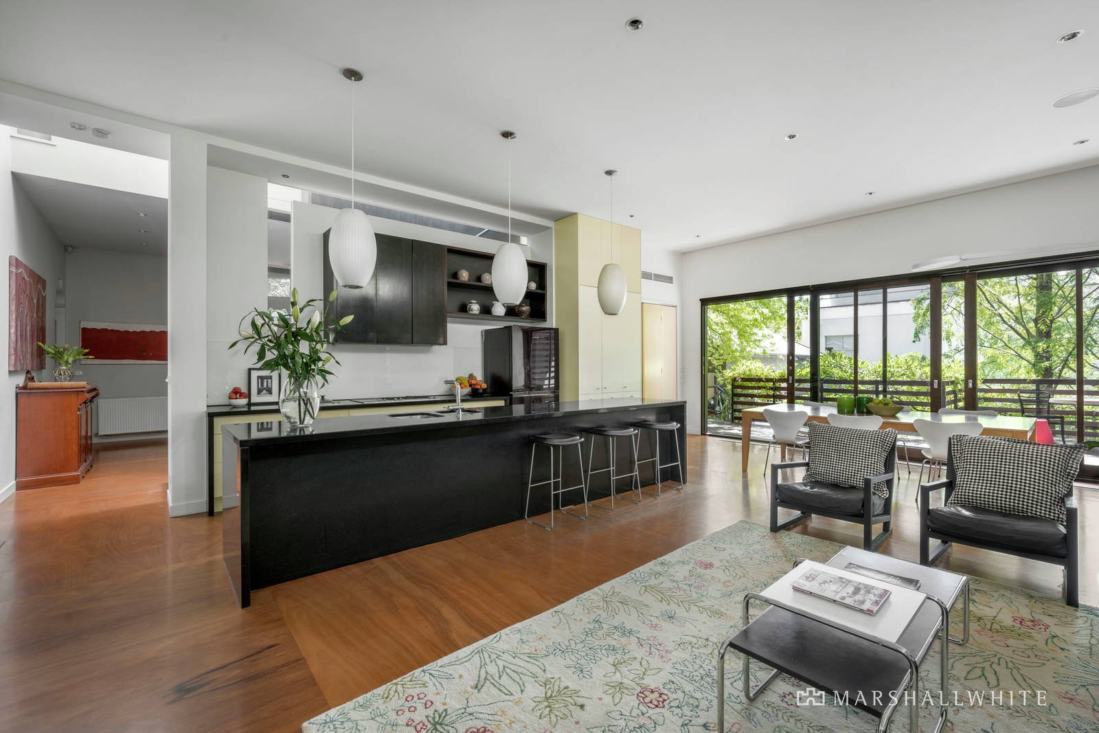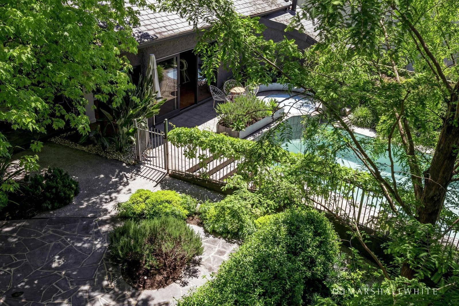 Nestled within stunning garden and pool surrounds landscaped by Michael Wright, the evocative reception hall introduces a serene library, gracious sitting room and a grand formal dining room featuring ornate ceilings, original timber floors, fireplaces and leadlight windows. Rich Blackbutt floors flow through an inviting retreat or playroom, the gourmet kitchen appointed with Gaggenau appliances and granite benches and the sensational living and dining room with an open fire. Stacking glass sliders open the living spaces to a large undercover deck overlooking the beautiful deep private north-facing garden with bluestone entertaining terraces, a solar heated pool and spa and a fabulous pool/guest house with kitchenette and bathroom. The glorious main bedroom with pressed metal ceiling, open fire, walk in robe and designer en suite and a second bedroom with stylish en suite and built in robe are downstairs. Skylit stairs lead up to a sensational children's zone comprising two additional bedrooms with robes and a shared en suite, fitted home office and a generous media room opening to a large covered north-facing balcony.