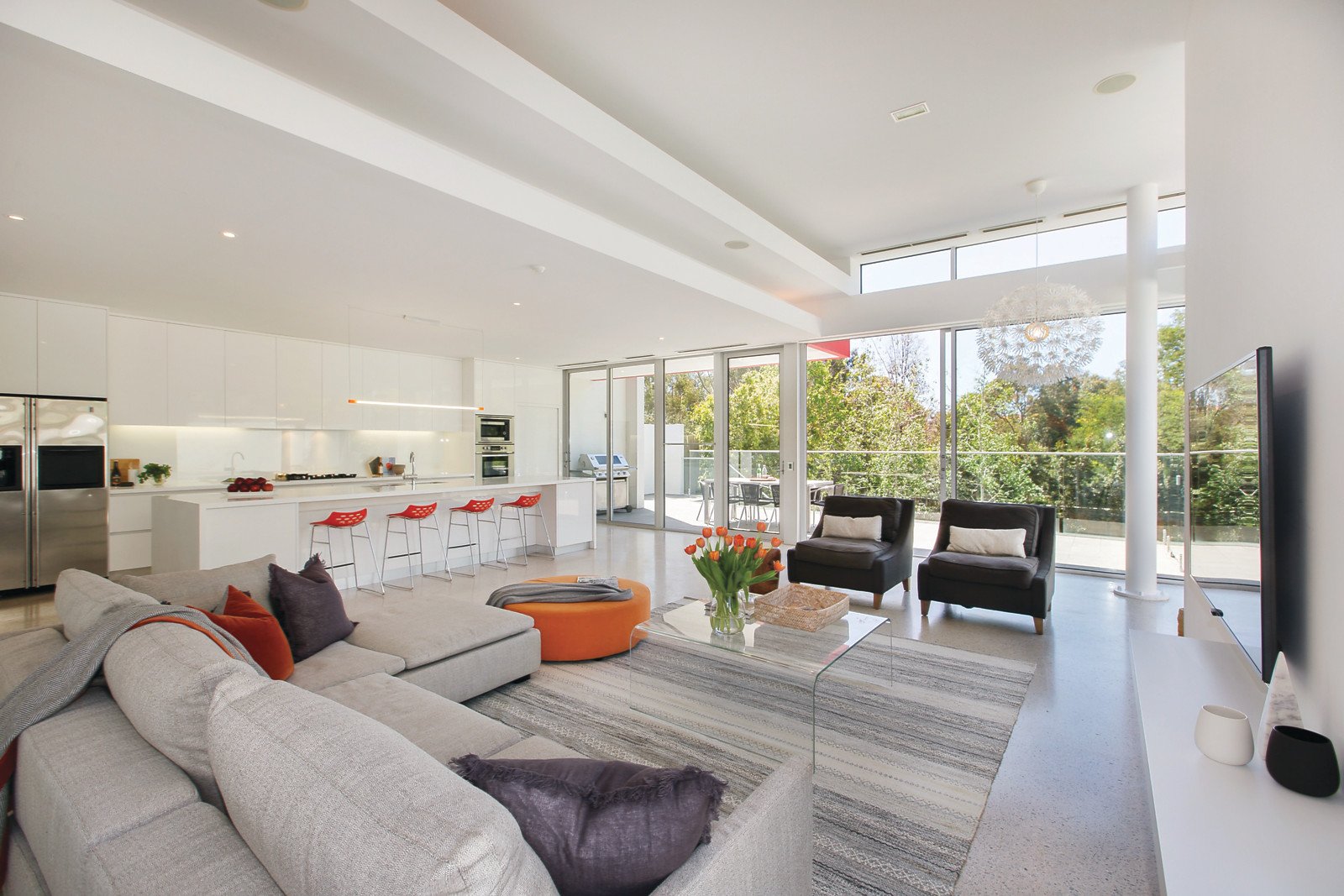 Behind the streamlined exterior, pale polished concrete floors, vast expanses of glass and soaring 3.3 metre ceilings make a breathtaking visual impact inside. The expansive living and dining room is superbly set against a back-drop of lush parkland and a picturesque 12.5 metre long heated self-cleaning pool. The living areas, served by a state of the art white Corian gourmet kitchen with full butler's pantry, open to a wide entertaining terrace overlooking the deep landscaped north-facing garden with gate to the park beyond. On the level below, a huge recreation/media room is accompanied by a gym, versatile store-room, home office or 6th bedroom and stylish bathroom. Taking full advantage of the park outlook, the main bedroom is appointed with a lavish en-suite and walk in robe. Four additional bedrooms with built in robes are complemented by a sensational retreat and two designer bathrooms.