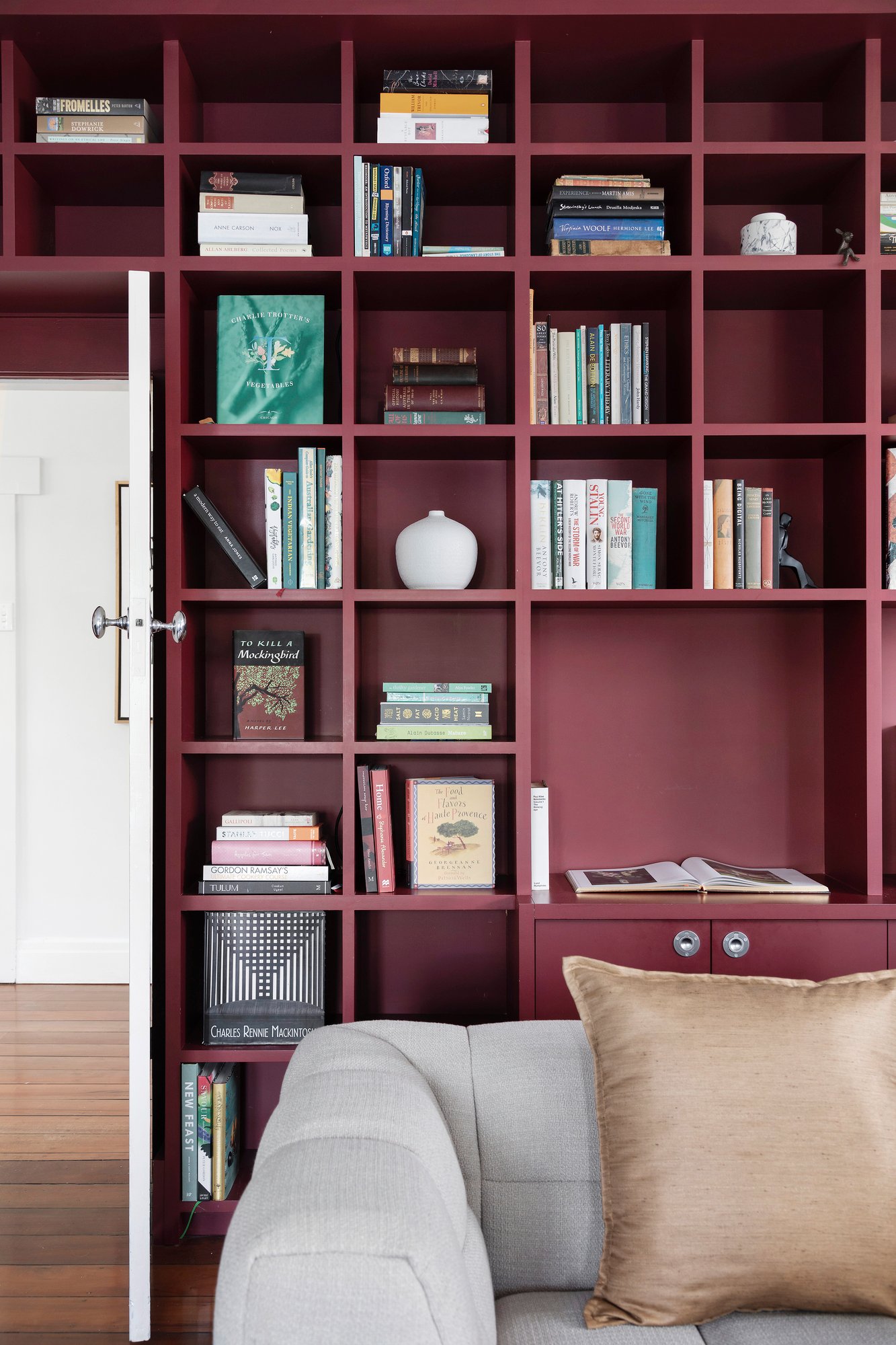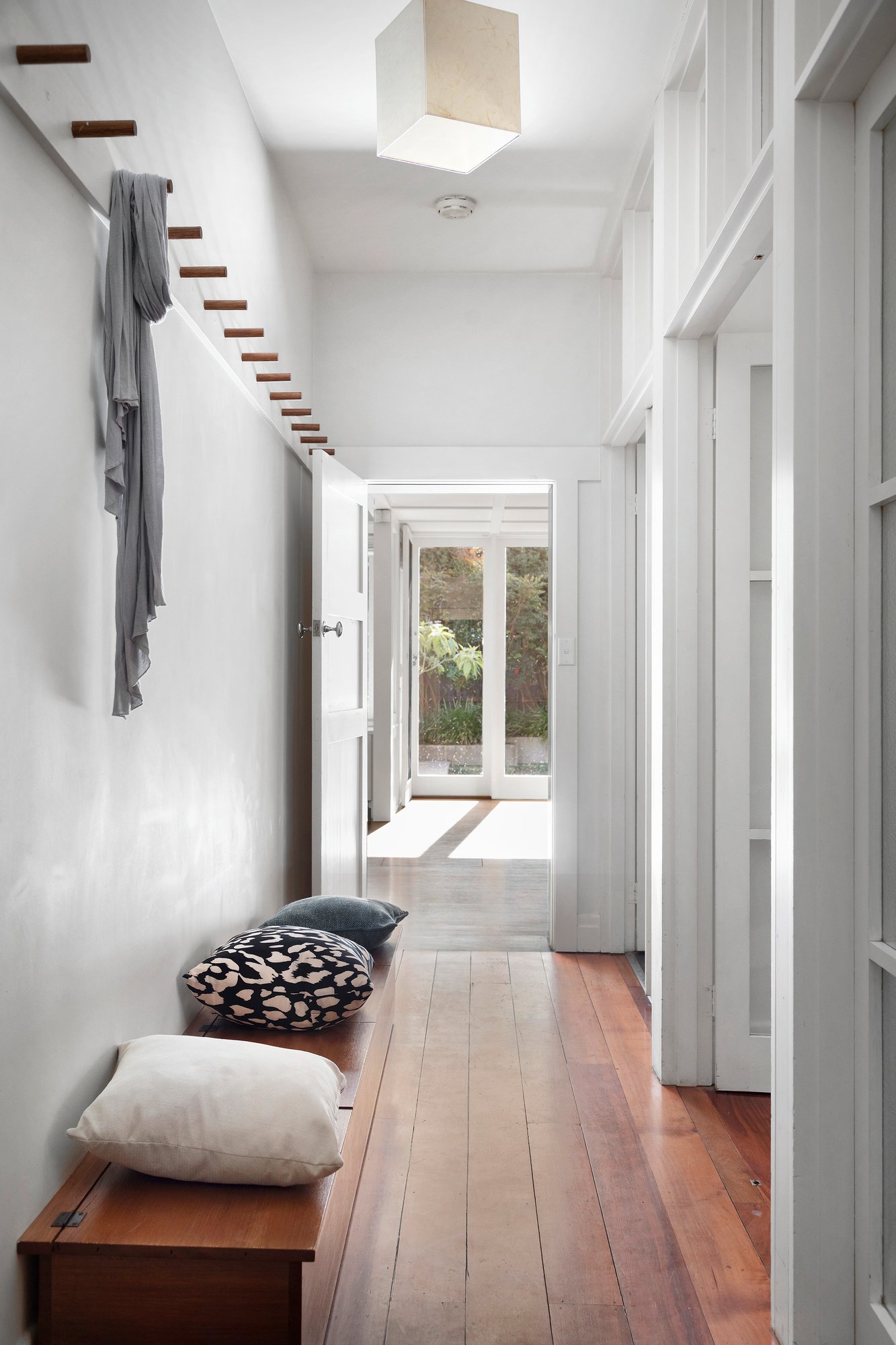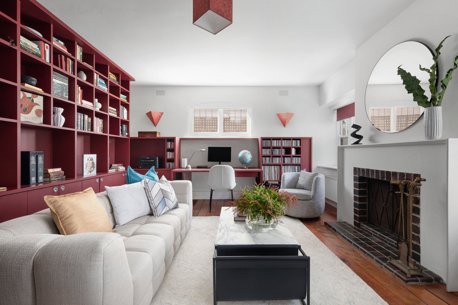 The expansive and adaptable layout also comprises a formal front living room with fireplace, box-bay windows, built-in shelving and desk, a downstairs study (or fourth bedroom), and the spacious upper-level main bedroom suite with the fireplace, box-bay windows and a converted balcony ensuite with exposed original brickwork, a large walk-in shower and treetop views toward the Bay, just 400 metres away. The upper-level family bathroom has original leadlight windows, classic subway tiling and a built-in bath and shower. All the bedrooms have custom built-in robes enhanced with the hallmarks of Rennie Mackintosh style. Additional features include an underground wine cellar, huge attic storage area, hydronic heating, evaporative cooling, a laundry with external access, a powder room, an understairs storage room and an underground 30,000 litre water tank for the garden watering system.