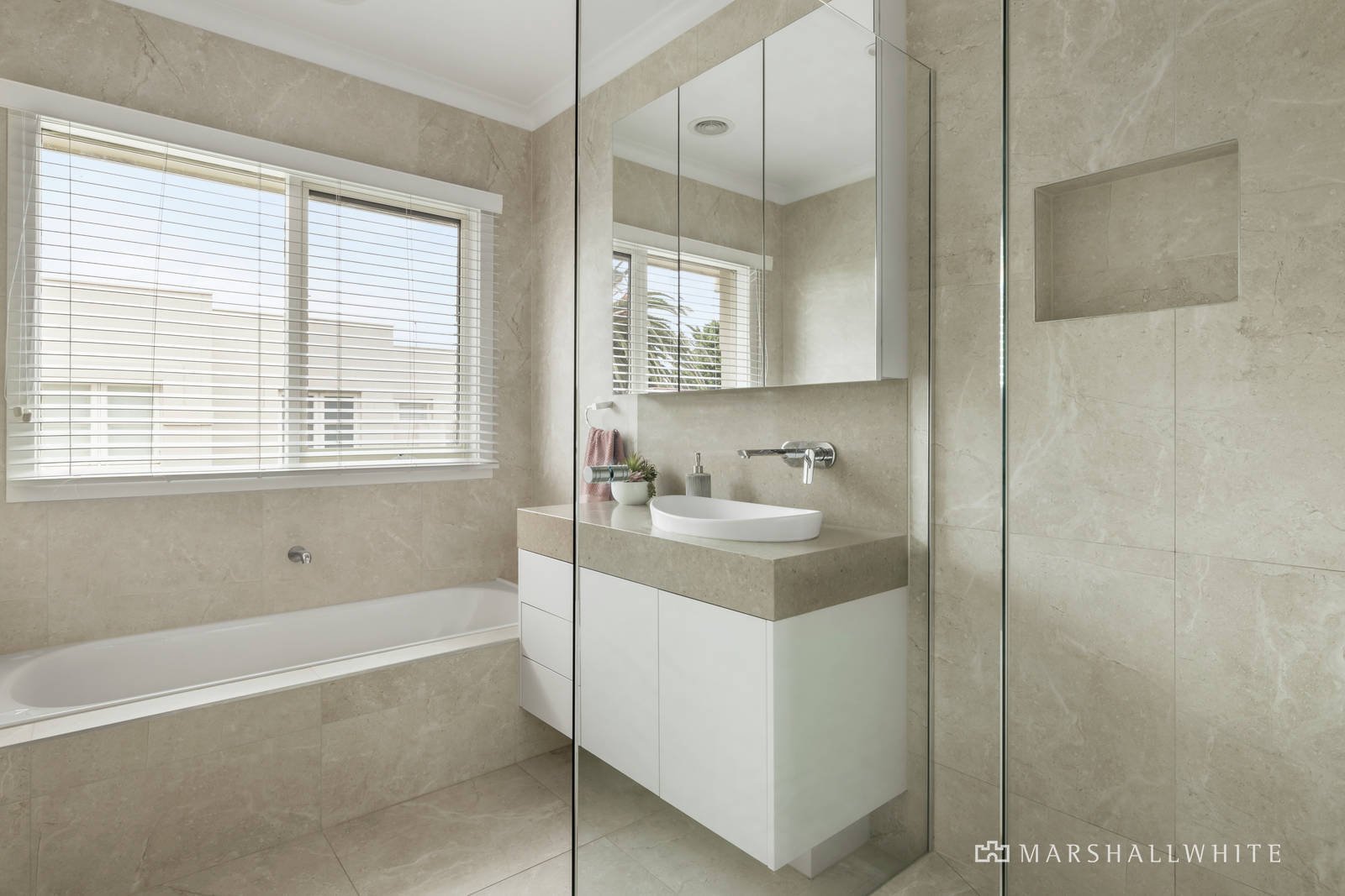 Beachside living that's also ultra-central for a prestige lifestyle has everything you desire, from a first-class address to a timeless interior and resort-style outdoor living. Originally constructed to a high standard as a builder's own home, the coveted Brighton Beach location and easy-care features are exemplary. The design centres on three interconnecting living and dining zones, four bedrooms and a home office, a remote-control fully tiled swim spa for cooling off or keeping fit, and two decked areas perfect for Sunday lunches and sunset drinks. A high standard of finishes and features showcases Spanish stone bathroom tiling, quartz-stone kitchen benchtops, reverse-cycle air conditioning, gas fireplace, and a double garage. Two self-cleaning Miele ovens, a servery for when you're dining outdoors, and a butler's pantry/laundry enhance the kitchen, and waterfall showers and underlit cabinetry add a premium edge to the ensuite and bathroom. Four spacious bedrooms include an oversized main suite, and you can work from home in either the ground-floor office or upstairs fitted study zone. Set yourself free from time-consuming maintenance and start enjoying the many amenities that are nearby. You've got the beach at the end of the street, cafes and a sports oval around the corner, and you can walk to Brighton Beach train station and Were Street Village shops in minutes. Families will appreciate the convenience of being this close to Haileybury, St Leonard's College, and Brighton Beach and St Joan of Arc Primary Schools.