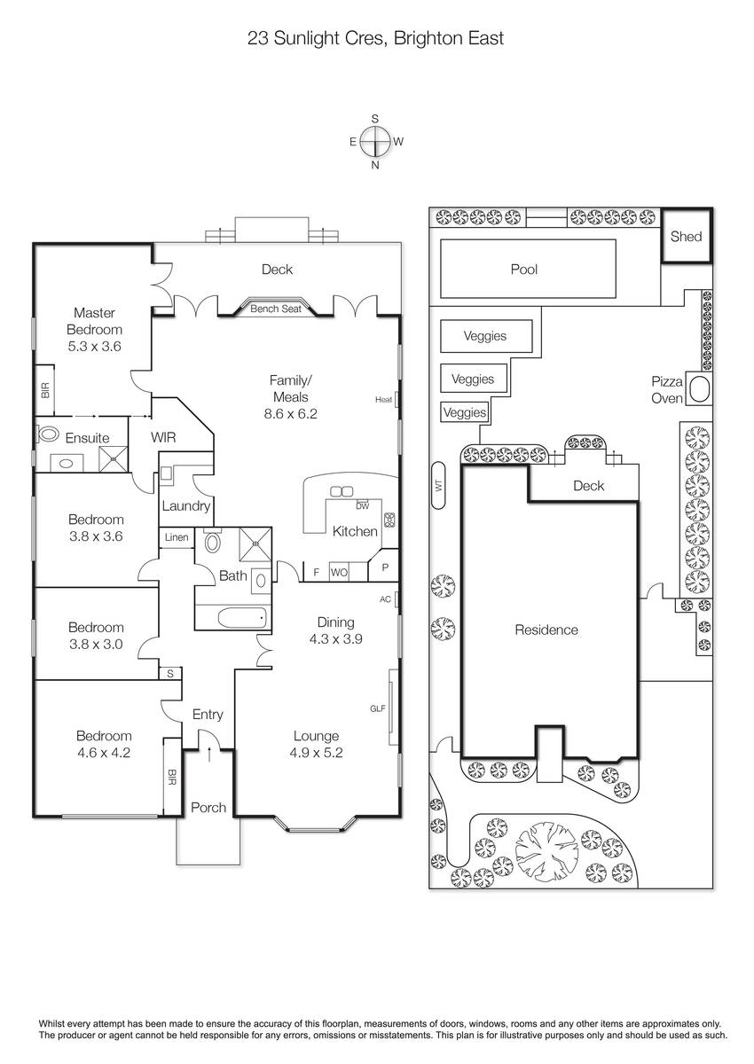 Create a new era of contemporary style on 729 square metres of land (approx.), metres from Dendy Park's wide open spaces and an easy walk to South Road's schools and Brighton Secondary College. The sought-after location is just six doors from one of Bayside's best sports and leisure parks, and the single-level home is ready to enjoy while plans and permits are finalized (STCA). It is well-appointed and spacious with a north-facing lounge and dining room, a main living zone that opens onto a deck and garden with a pool, pizza oven and vegetable beds, four bedrooms including a spacious parents' retreat, seven kilowatts of solar power, and ducted reverse-cycle air conditioning. Families love this Brighton East neighbourhood. Church Street and Hampton Street's shops and cafes are minutes away, St Leonard's College and Haileybury are within easy walking distance, and you'll find local shops, childcare centres, St Mary's Preschool, and Brighton Golf Course close by. Start planning a state-of-the-art home or low-maintenance luxury residences and imagine the lifestyle that awaits in this prized leafy street.