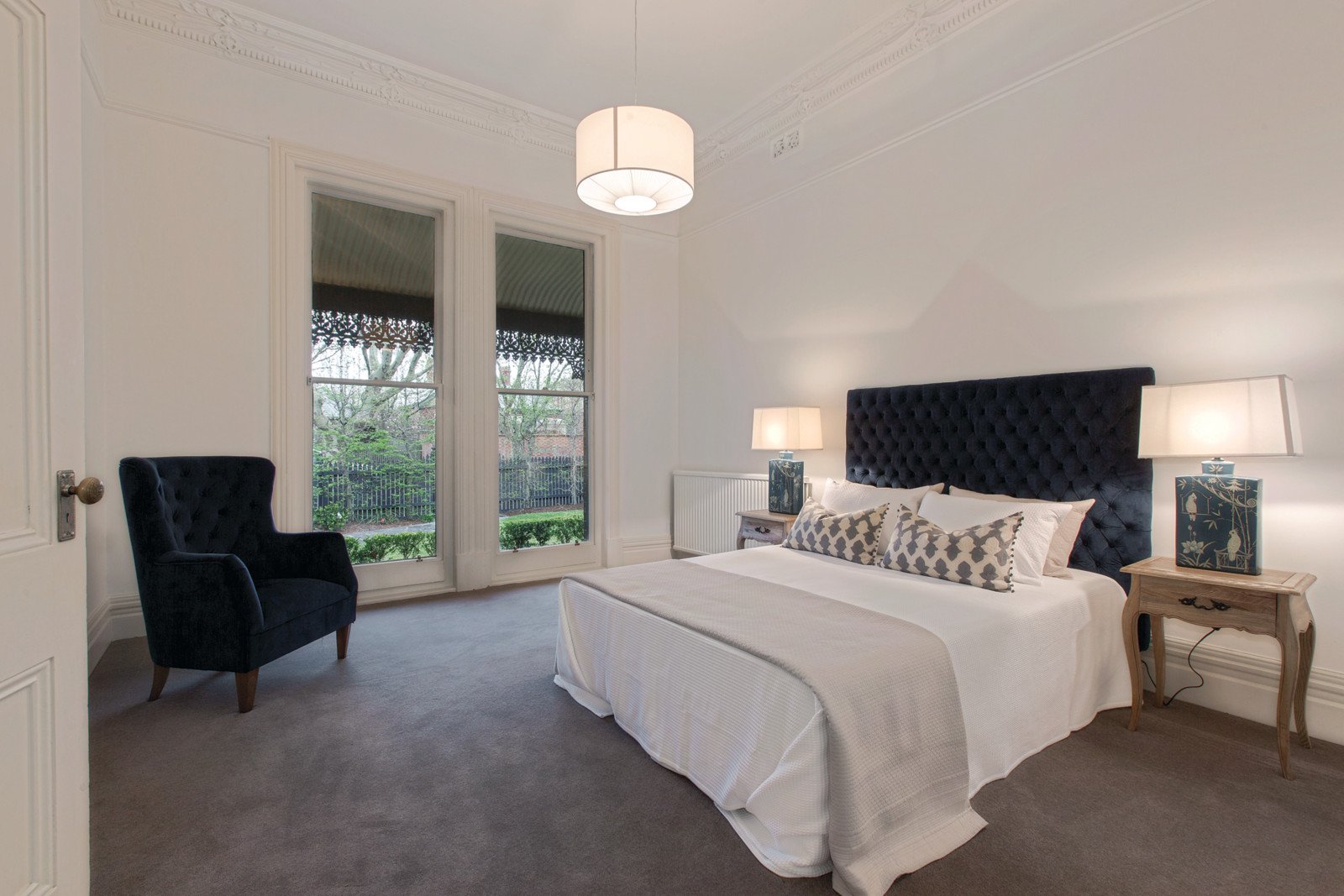 An imposing presence behind a broad landscaped street frontage, this illustrious Hawthorn brick Victorian residence's gracious proportions and magnificent elegance deliver instant family appeal with scope to easily update (STCA) when required in a tranquil Gascoigne Estate address close to Central Park, cafes, trams and great schools. A majestic arched hallway featuring dark stained timber floors introduces a beautiful sitting room with marble open fireplace, three glorious bedrooms with open fireplaces, ornate ceilings and built in robes, 4th bedroom, study and two bright bathrooms. The generous living and dining room with a granite and timber Ilve kitchen open out to a stunning wide private hedged northwest garden and bluestone al fresco terrace. Impeccably presented, it also includes hydronic heating, air-conditioning, alarm, laundry, auto gates and double garage. Land size: 832sqm approx.