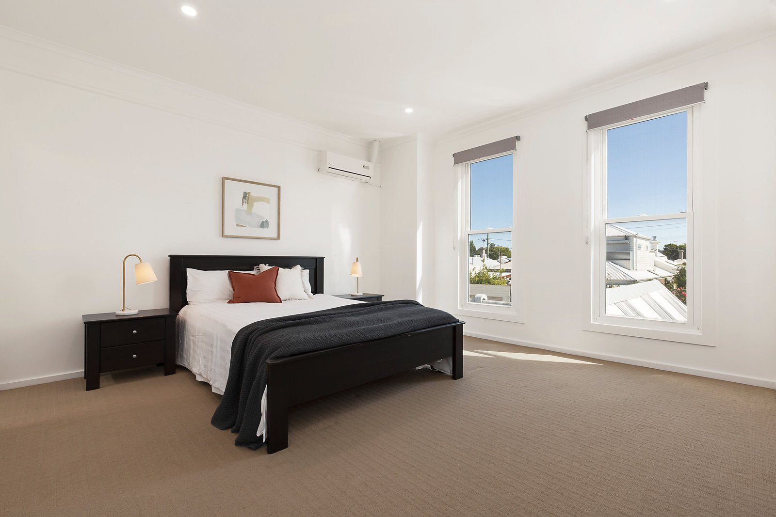 A soaring void adds to the sense of space and light in the impressively proportioned living and dining room. Timber floors flow through to a sleek gourmet kitchen with ample storage and stone benches and light-filled living room opening sliding doors to a private west-facing courtyard and off street parking via a rear lane. The expansive main bedroom with en suite and built in robe is accompanied by a second equally spacious bedroom with built in robe and balcony offering stunning city views, a third double bedroom with robes and a second bathroom.