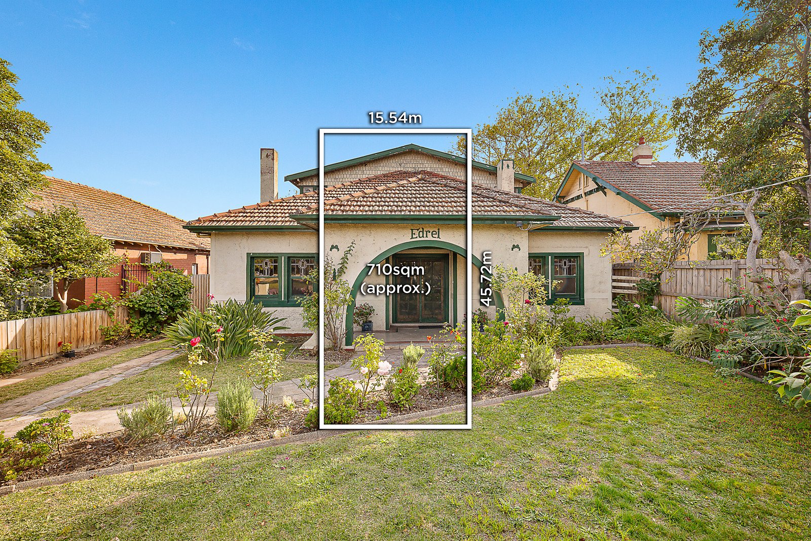 Character-rich six-bedroom home has big potential and a bright future on 710sqm approx. of land. Two-storey "Edrei" features a classic arched verandah with double doors opening onto a timber-panelled entry foyer, spacious lounge and dining rooms, and bedrooms on both levels. Original 1930s features include beautiful plasterwork on ceilings, leadlight windows, timber cabinetry and hidden timber floors. The big backyard opens up your options to create a large family room and pool, or add a second residence STCA. Set well back from the street, this solid-brick home lets you merge original character with a grand vision for luxury living. The ultra-central location has everything you need nearby. Walk to shops in Tennyson Street and Glen Huntly Road, Elsternwick station and trams in minutes, picnic in the grounds of nearby Rippon Lea Estate, and live in the Elwood Primary School and Elwood College zones. Easy access to Elsternwick Park, the beach and sports facilities.