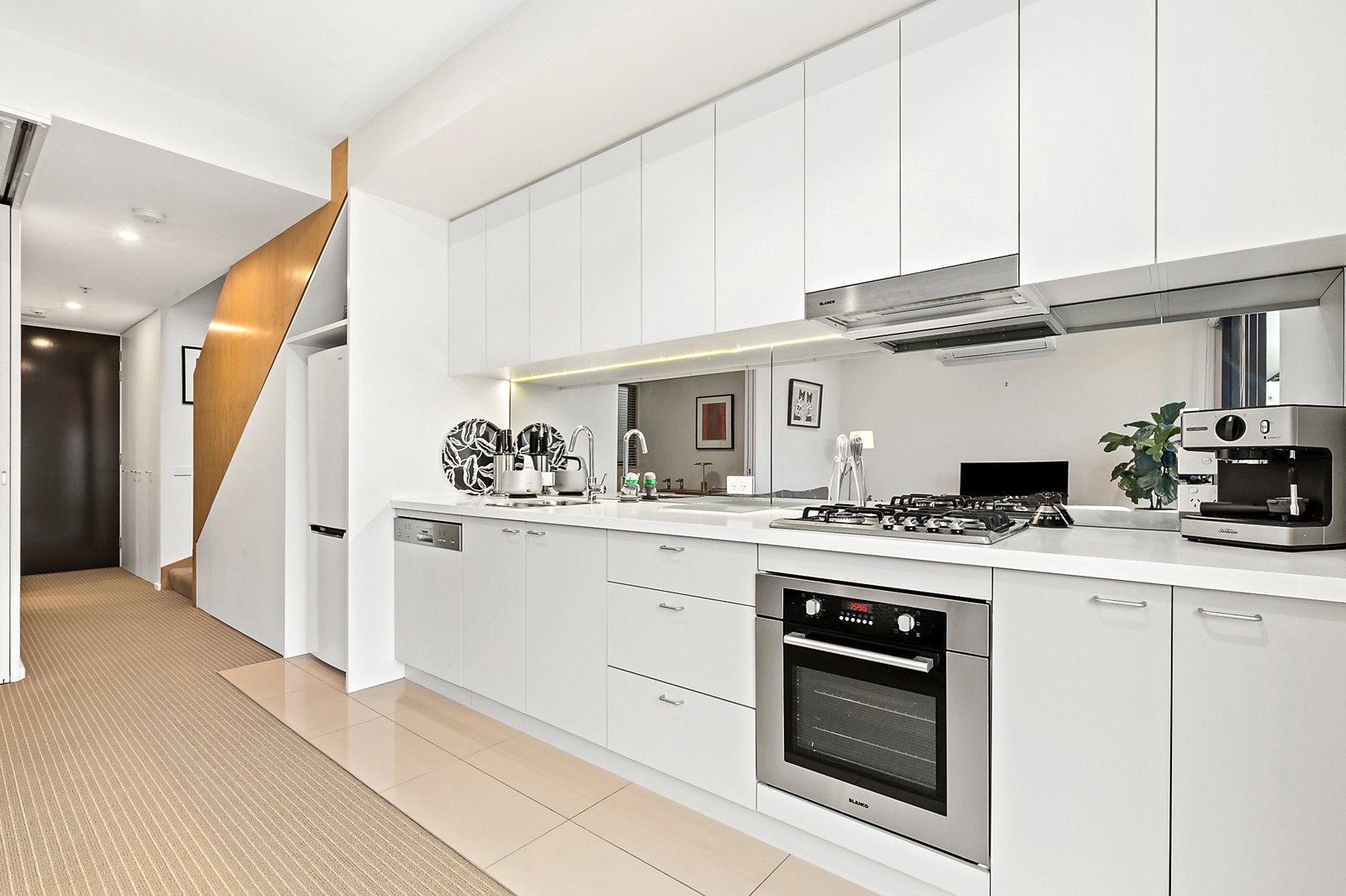 A superb synthesis of stone bench tops, Blanco appliances and sleek mirrored splash backs, the kitchen / meals living area opens to a sheltered balcony, whilst upstairs the main bedroom feels like a wonderful retreat with its own designer ensuite and huge built-in robes, all with views that span to the CBD. Tucked away at the rear of the block, the home is accessed via video entry, with secure basement parking, a storage cage, a second bathroom, split system heating and air conditioning.