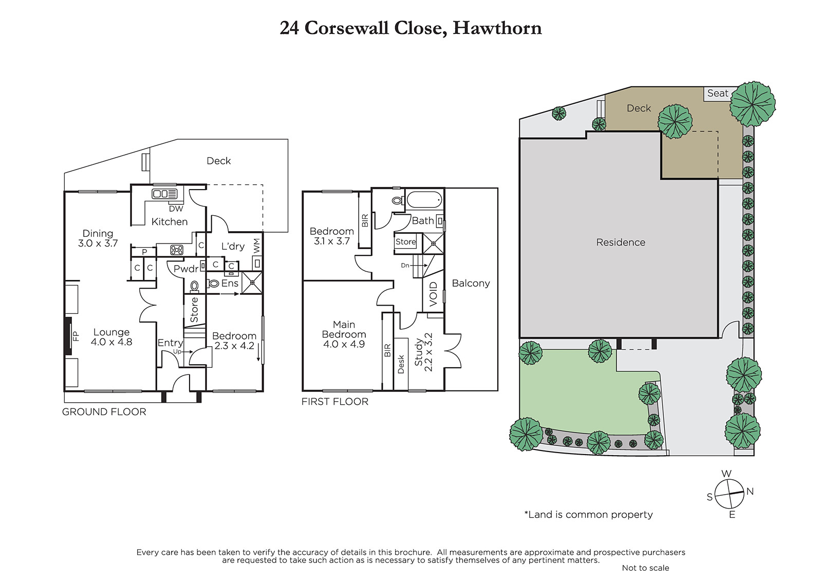 The flexible interior features a north-west orientation providing plenty of natural light and winter sunshine when it counts. The entrance hall leads to a sitting room with OFP and adjacent dining, a downstairs bedroom with ensuite and a powder room. Through to a stylish kitchen with CaesarStone bench-tops kitchen, Smeg and Bosch appliances and laundry opening to and leafy deck. Whilst upstairs has a pristine bathroom with separate WC, two good-sized bedrooms with BIRs plus a study opening to a northern balcony with tree-top views - providing a great area for outdoor dining and entertaining. Other features of this delightful home include renovated bathrooms, ducted heating, Nobo heaters, R/C air conditioner (main bedroom), excellent storage, low maintenance gardens and off-street parking.