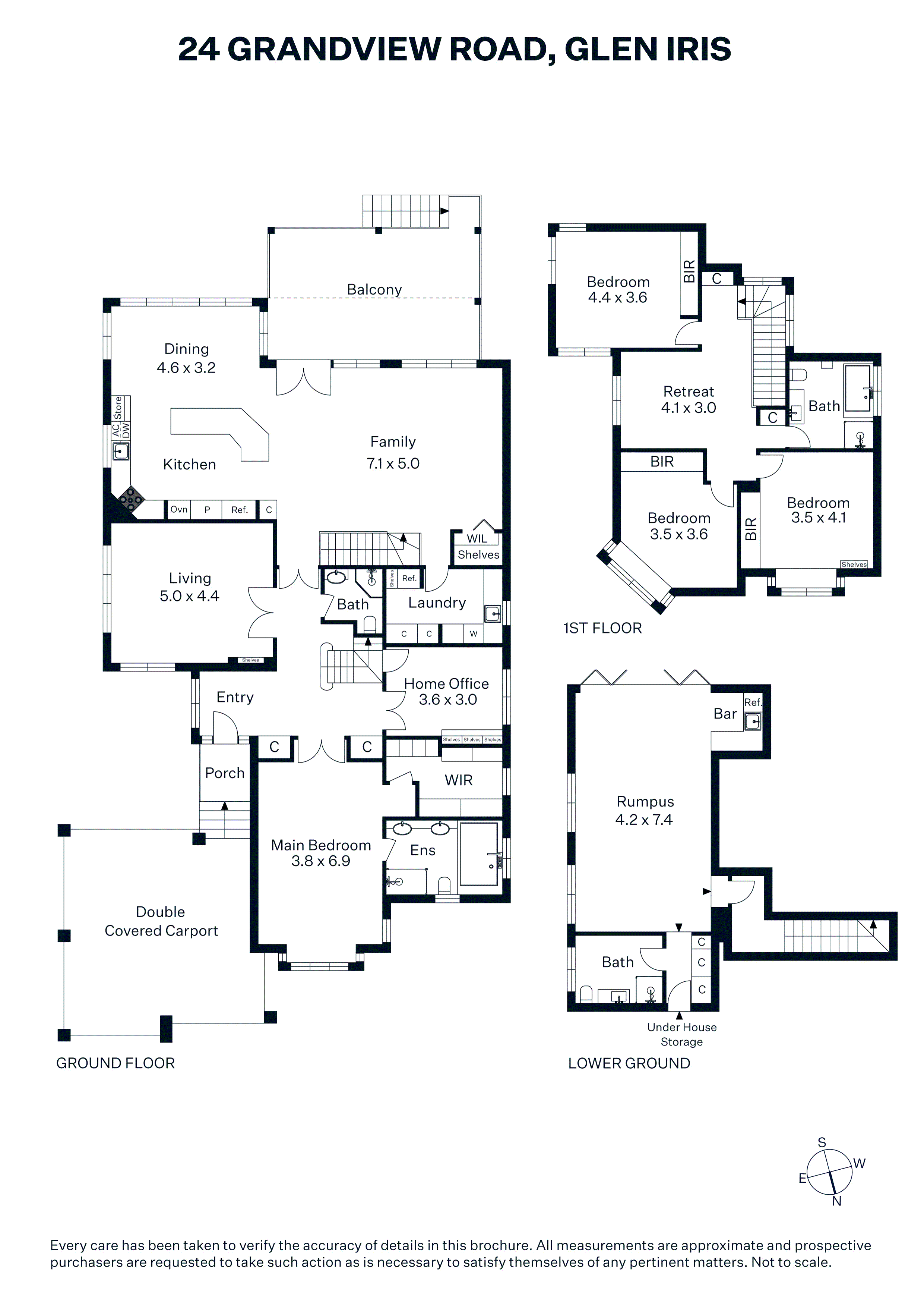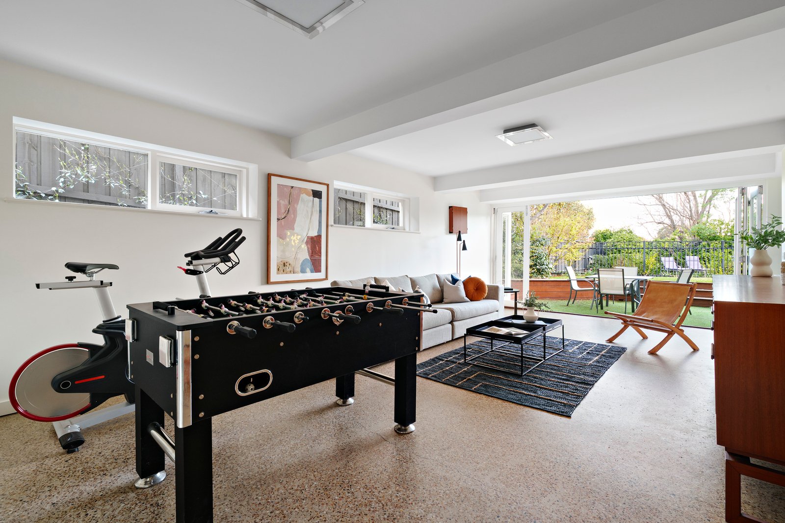 A welcoming entrance hall featuring high ceilings and timber floors introduces a home office and gracious sitting or media room. Spectacular in scale, the light-filled open plan living and dining room with a concealed study nook and gourmet kitchen enjoys an elevated position, not overlooked by neighbours, and is enhanced by impressive tree top views from every angle. It opens out to a large deck overlooking the deep private garden and solar-heated pool. An expansive lower-level recreation/rumpus room featuring polished concrete floors, a wet bar and bathroom fully opens through bi-fold doors to the garden. The main bedroom with walk in robe and en suite is serenely positioned on the ground level while a fabulous children’s zone upstairs comprises three additional robed bedrooms, a stylish bathroom with freestanding bath and a retreat.