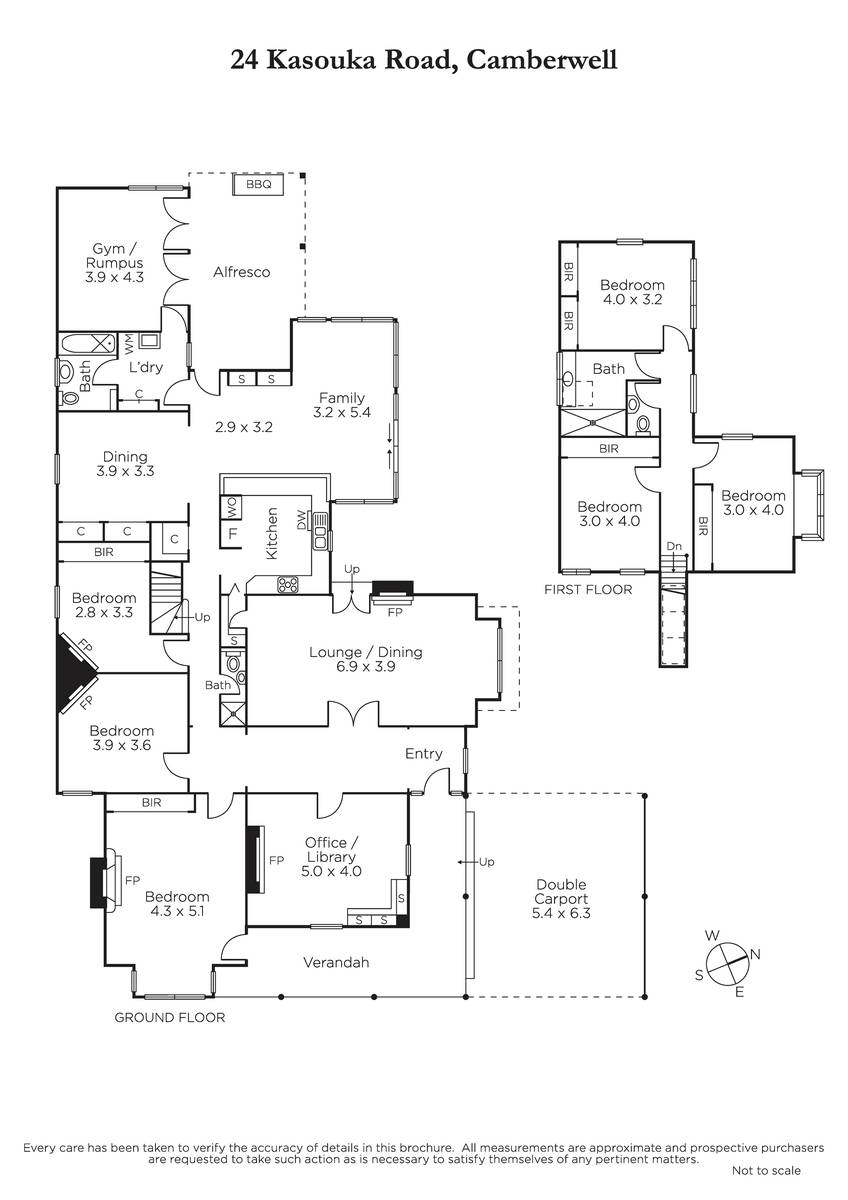 An exquisite hand-painted stained-glass entrance and double-arched hallway set a tone of refinement extending to an executive office/library under a glorious ceiling, huge main bedroom with boxed bay window and a large formal dining room, all with marble mantlepiece fireplaces/heating. Further are two bedrooms near a bathroom, then a casual dining room, a 2nd bathroom, laundry and versatile gym/rumpus with an external door.