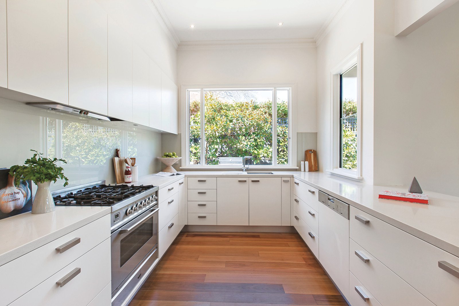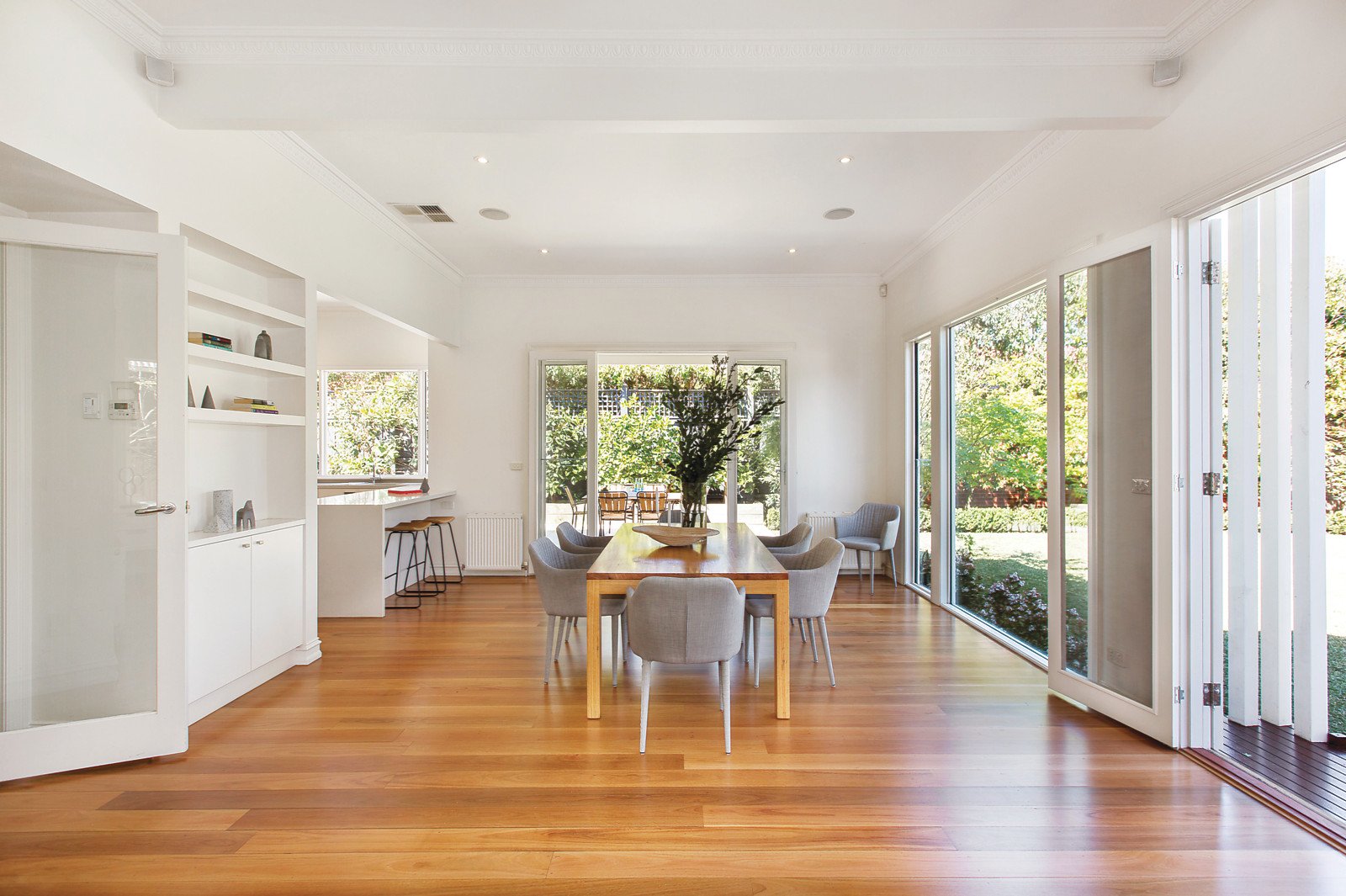Instantly inviting, the wide hall featuring Grey Box Gum floors and high ceilings introduces an elegant sitting room, light-filled study, beautiful main bedroom with stylish en-suite and walk in robe, three equally spacious bedrooms with built in robes and a designer bathroom. Exceptionally generous and bathed in natural light, the living and dining room with a gourmet kitchen appointed with Ilve oven, stone benches and a butler's pantry open to a picturesque private garden with expansive entertaining terrace.