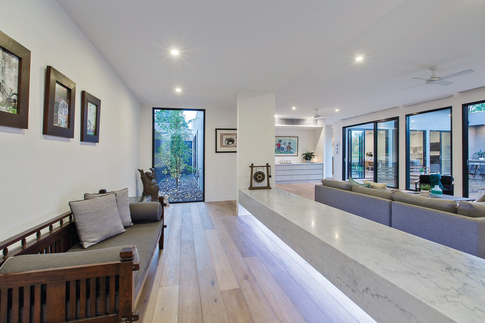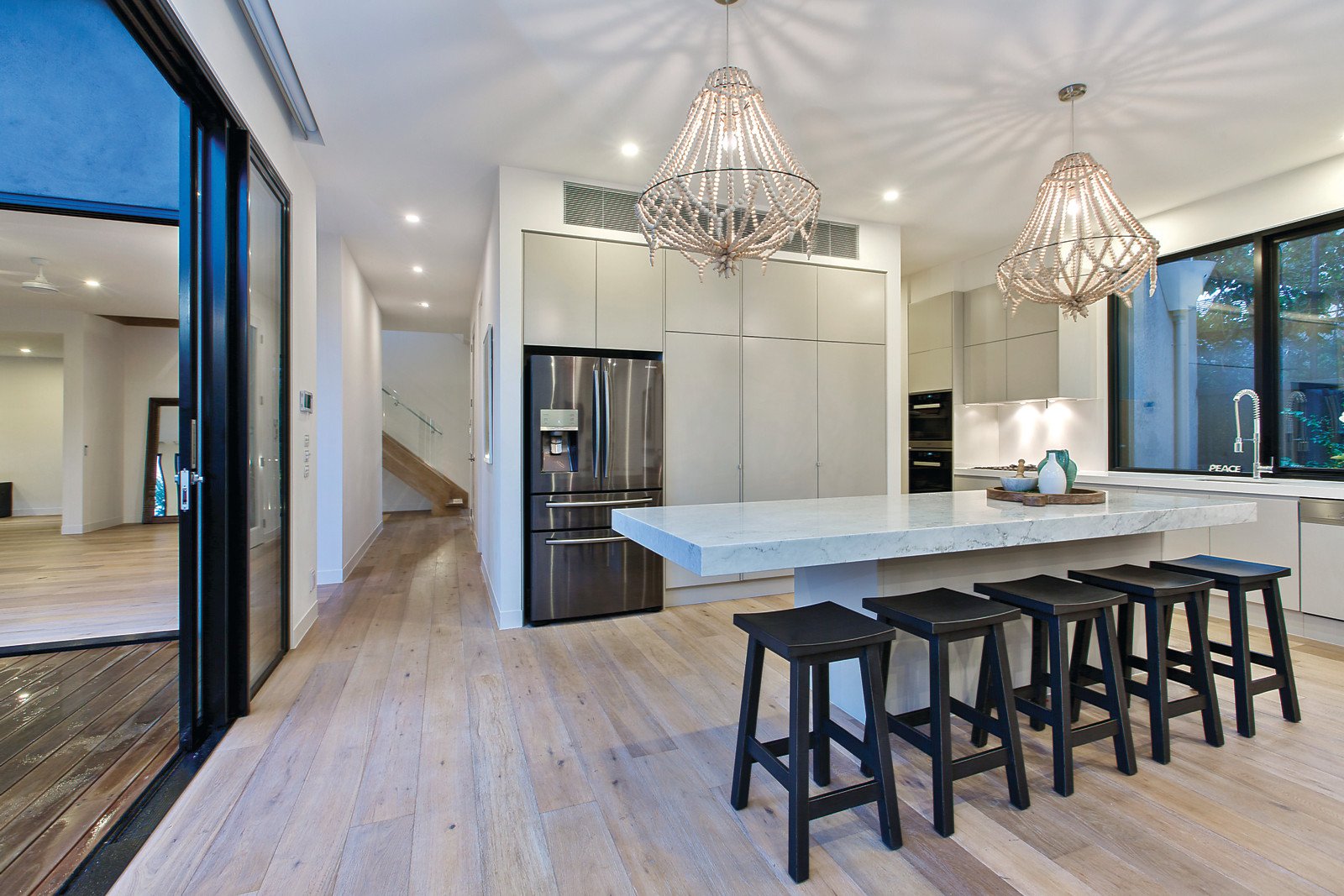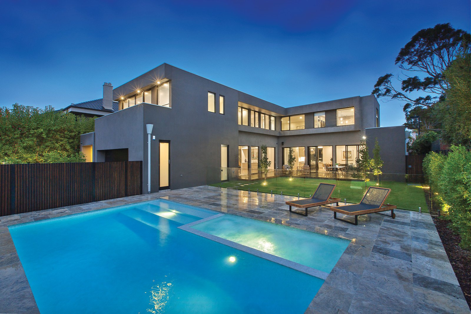 Cutting-edge family home is grand-scale and exceptional, metres from the beach for the ultimate Brighton lifestyle. Designed by Ian Freeman of Morphosis Architects and with a visionary interior by Kate Walker Design, this as-new marvel has a resort vibe and every indulgence. Huge living areas, a cinema room, five bedrooms and four bathrooms reveal sublime finishes, with luxurious use of carrara marble, Turkish limestone, and the finest joinery. Exacting planning has created the best in indoor-outdoor living, with a glass mosaic-tiled pool, outdoor kitchen, decking and Simon Perry landscaping. Ultra-private and double-glazed, every room is a harmony of space and quality. Marble, European oak, glass and light converge in the spacious lounge, the sprawling family room is full of design inspiration and opens onto the north-facing garden, and the cinema room is ready to screen your favourite films with a rear projector and screen. Exacting planning reveals a dedicated wine room, marble kitchen with butler's pantry and prestige fitout, grand main bedroom suite with a huge travertine ensuite, slab hydronic heating plus reverse cycle heating and cooling, and a poolside powder room. This is a home of extraordinary ingenuity, showcasing marble-topped seating and storage spaces, hi-tech security and cabling, spotted gum decking, timber chandeliers, stacking sliding doors, feature gas fireplace, Miele appliances, and soaring street presence. Metres from Dendy beach and near schools, this is one of the finest prestige homes you could wish to own.