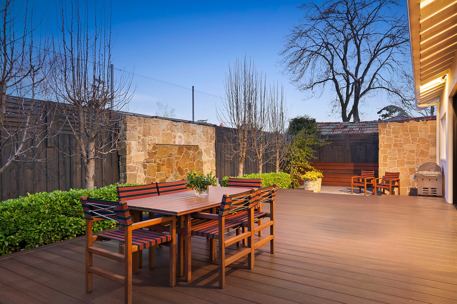 Impeccably presented throughout, a wide entrance hall featuring ornate ceilings and polished timber floors introduces the generous main bedroom with pebble fireplace, premium robes and designer en suite, a second double bedroom with built in robe, a spacious 3rd bedroom and stylish bathroom. Timber floors flow through an inviting living room with pebble gas fire, separate study/media room, light-filled dining area and a sublime gourmet kitchen appointed with Calacatta marble benches. Full width sliding doors open the dining space out to a brilliantly landscaped northeast private garden with extensive decking, bluestone terraces and a water wall all surrounded by greenery.