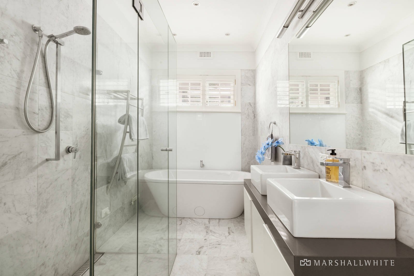 The picturesque exterior profile creates an appealing first impression matched inside by white timber floors and high ceilings in the L-shaped hall, gorgeous main bedroom with built in robes, open fire and window seat and a second double bedroom with built in robe. The stylish marble bathroom features a bath, separate shower and double basins. High ceilings accentuate the sense of space in the expansive open plan living and dining room with a sleek gourmet kitchen boasting stainless steel benches, Ilve oven and integrated Liebherr fridge/freezer. Bespoke joinery in the living area includes a clever fitted study nook. Bi-fold doors open the living space completely to a private decked courtyard, ideal for al fresco entertaining and dining.