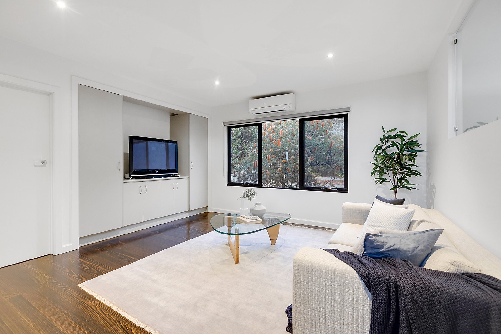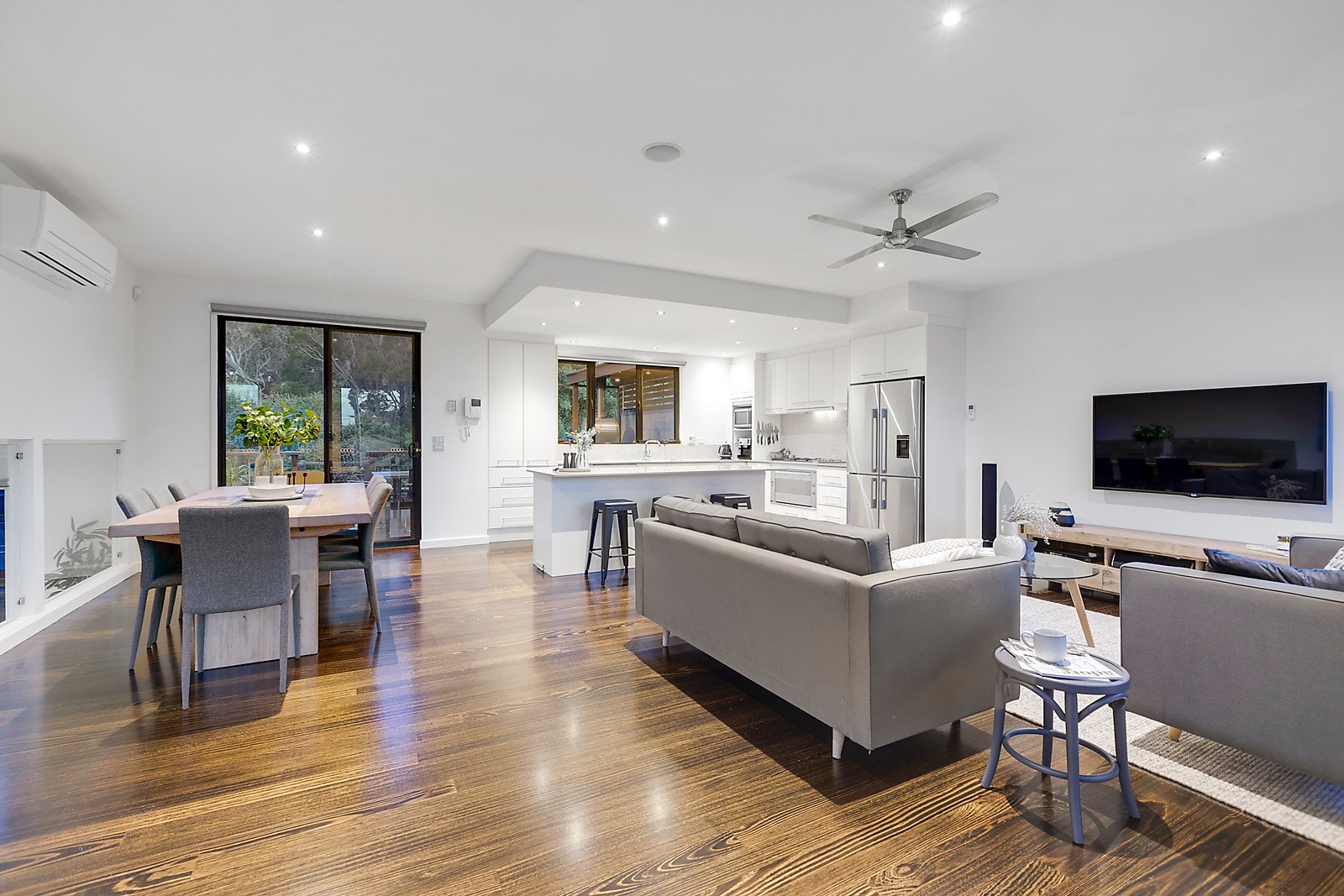 An eye-catching rendered façade precedes a sleek contemporary interior over three levels which delivers an excellent family floorplan with fantastic zoned living and entertaining areas in this superb elevated home. Highlighted by the upper level family domain which is designed for relaxing with family or friends; either indoors in the expansive living and dining room, on the front balcony enjoying bay views and twinkling City lights or the back deck with an outlook to leafy trees and the Mount Martha Golf Course. Conveniently located moments from Mount Martha Village, the beach and Primary School, Reserves and easy access to Mornington amenities plus the Mornington Peninsula Freeway.