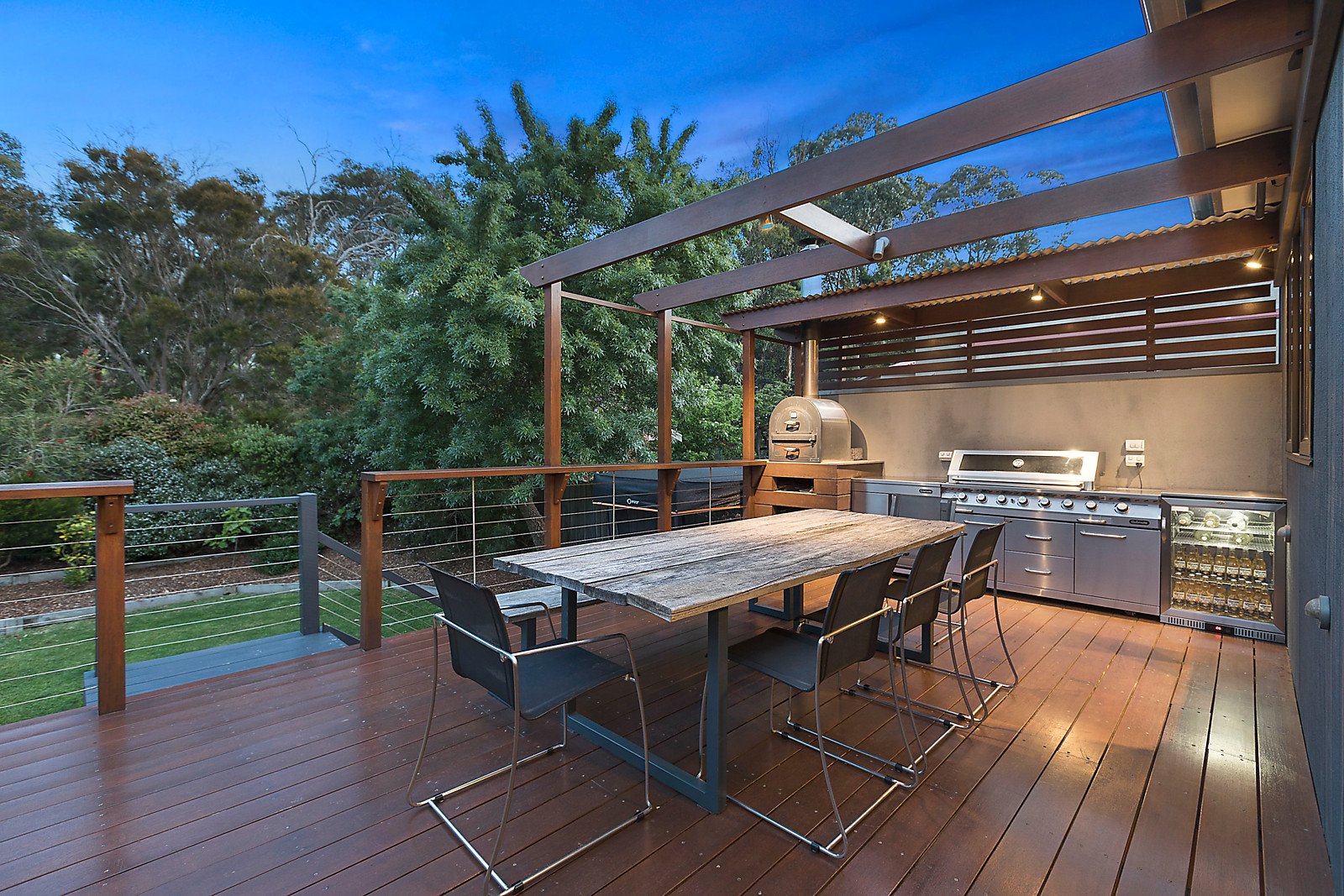 The accommodation starts on level one with two bedrooms, the main with a WIR and a pristine ensuite; leading to a further two bedrooms with BIRs a family retreat and sparkling bathroom on level two. Entertaining will be a breeze on level three which includes a stylish CaesarStone kitchen equipped with prestige Smeg appliances and Bosch dishwasher. This is complimented by a fully equipped outdoor kitchen complete with barbeque, pizza oven and bar fridge on the rear deck. Other features of this beautiful family home include video intercom, alarm, ducted heating, R/C air conditioners, landscaped gardens with rear gate to the Golf Course and large remote double garage/storage with secure internal access and off-street parking for up to 5 cars.