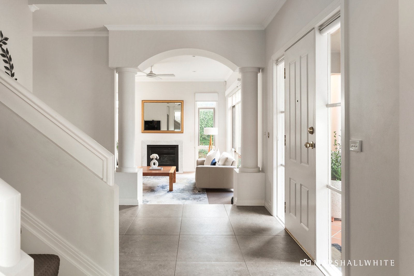 The inviting central hall is flanked by a refined sitting room with a gas log fire and a light-filled dining room opening to the leafy forecourt. The gourmet kitchen appointed with stone benches and stainless-steel appliances and the casual living and dining room open to a large private paved garden oasis for relaxing and entertaining, all surrounded by landscaped garden beds. An abundance of family accommodation upstairs comprises the expansive main bedroom with walk in robe and en suite, three double bedrooms with built in robes, a north facing balcony offering city glimpses and a second bathroom with bath.