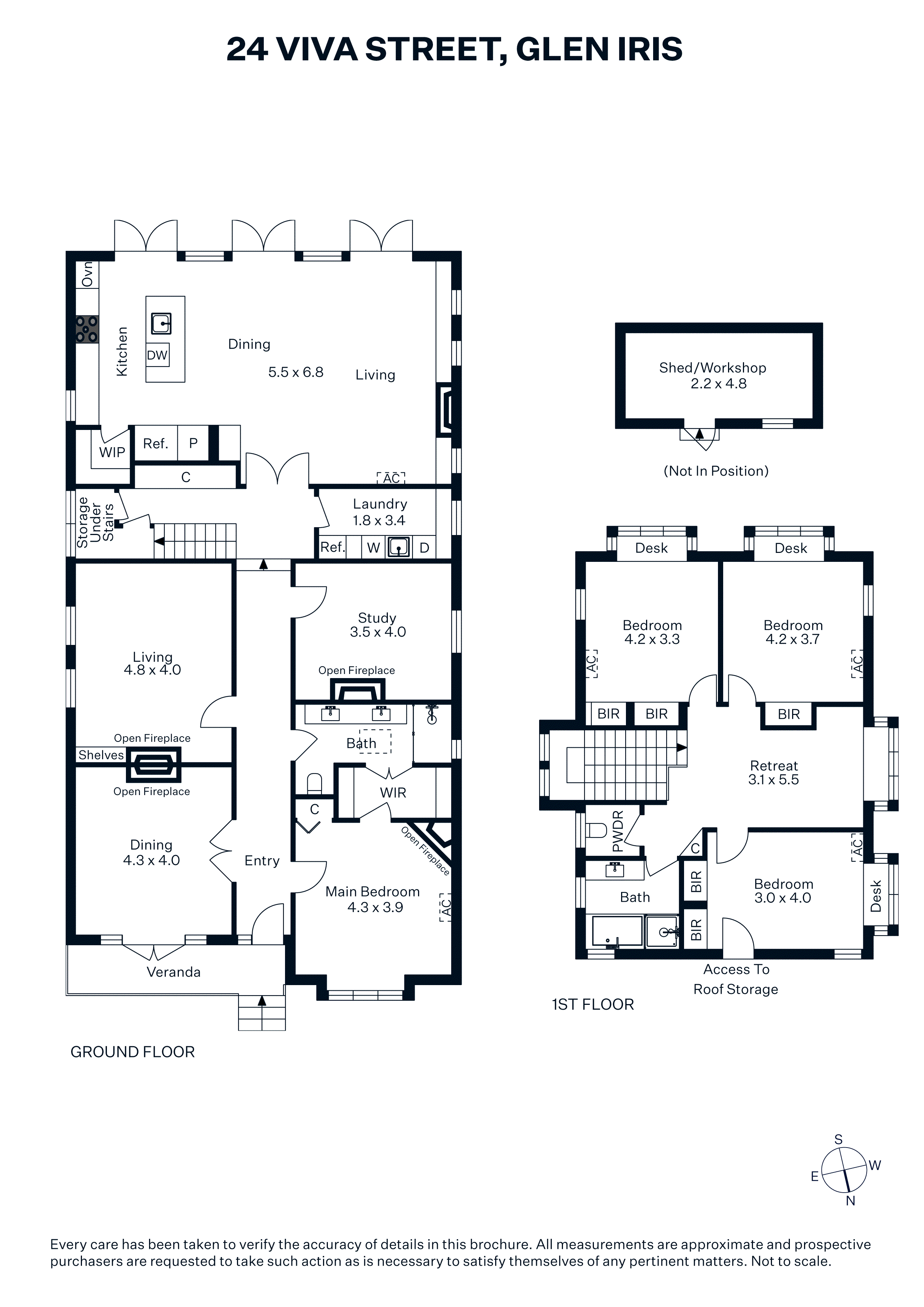 An arched hallway with Baltic pine flooring is flanked by a formal dining room, sitting room, a main bedroom with a WIR and dual access ensuite, study or home office and a laundry. A further three double bedrooms with built-in robes, desks and air conditioners are situated upstairs alongside a family retreat and bathroom. A very generous full-width family living and dining room includes an entertainer’s prestige kitchen with European appliances and marble bench tops, WIP and prestige Siemens and Bosch appliances. It flows through tall French doors to the outdoor dining and entertaining areas including an elevated heated pool and spa in deep and lush garden. Other features include ducted heating, air conditioners (main bedroom and family living), original OFPs, extensive internal storage including roof, garden storage and workshop plus double off-street parking.