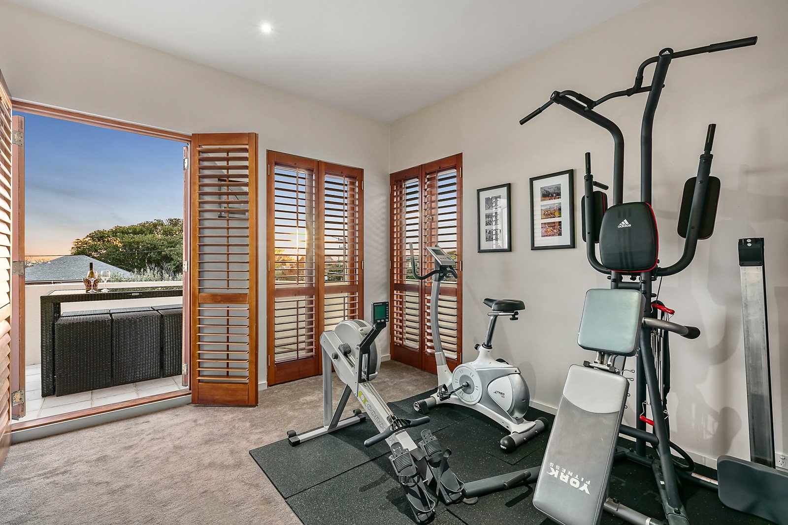 Upstairs is the master bedroom suite with spacious WIR and luxury ensuite. Another two bedrooms have BIRS and all open out through French doors to the upper balcony where the views of Port Phillip Bay sweep from the city skyline to the Mornington Peninsula.