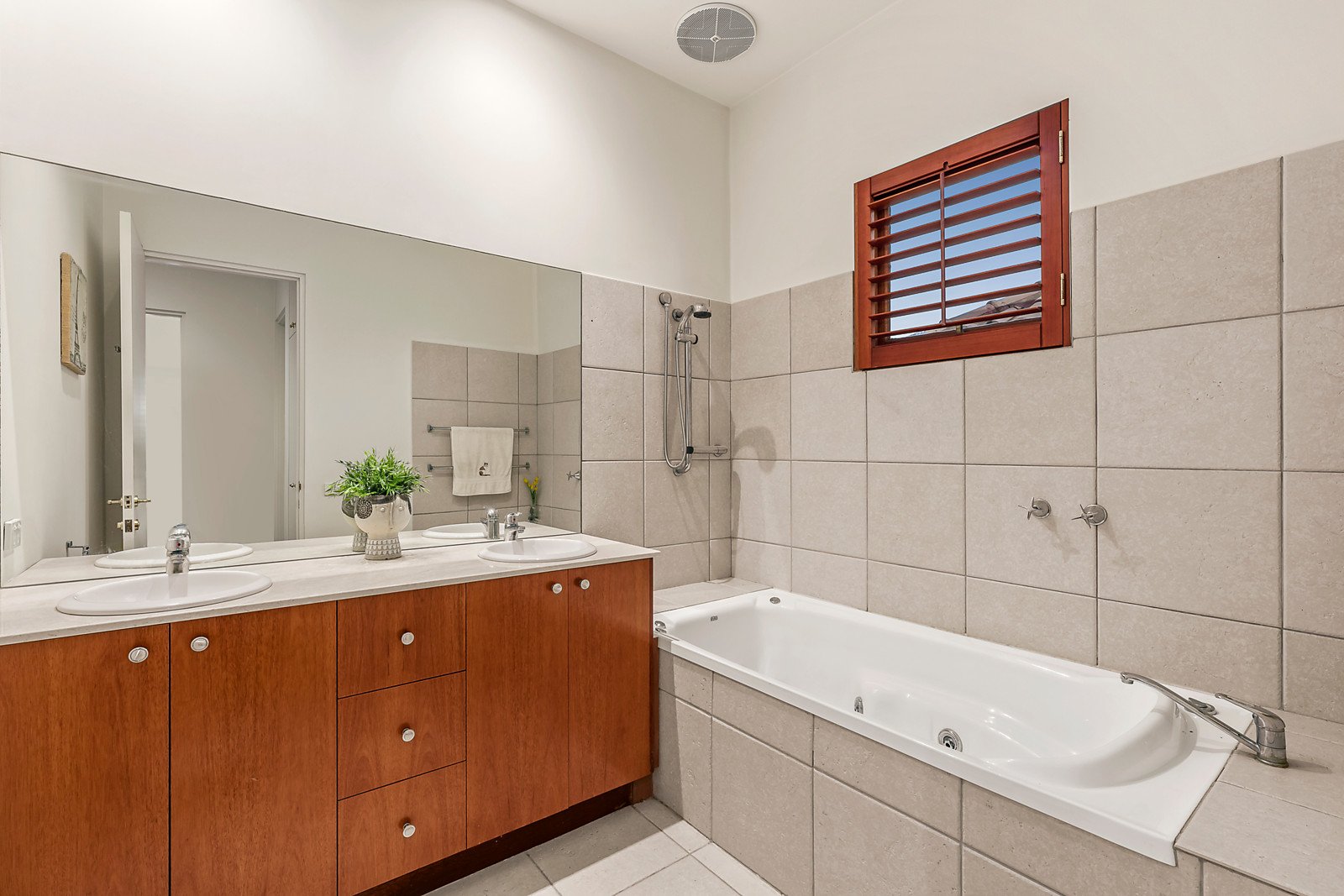 The main bathroom has a deep spa-bath and there is also a home-office/study space plus an additional powder room upstairs. Other features include large custom-fitted laundry, hydronic heating, S/S and ducted A/C and electric wall-heater panels. Stairs lead down to the DLUG with remote/internal access. On a low maintenance, fully self-contained corner block, the property is just 200 metres to Brighton Beach and close to the station, prestigious local schools, cafes and boutiques.