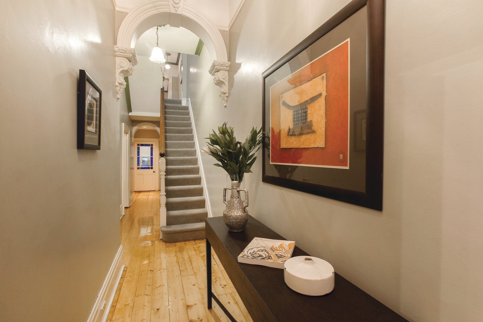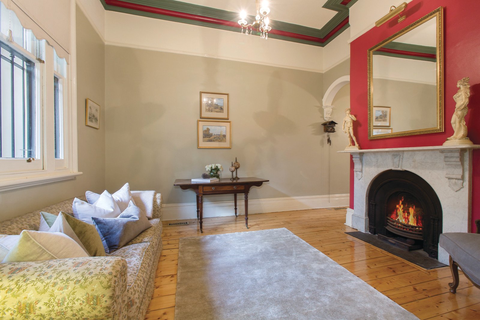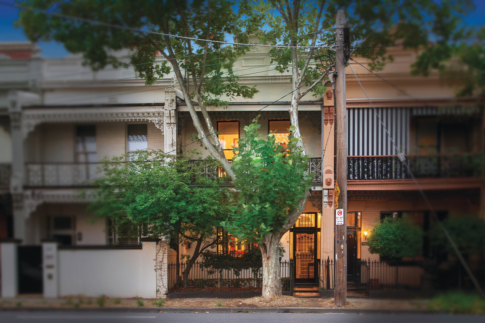 The hallmarks of Victorian architecture including Baltic pine floors and high ornate ceilings are beautifully displayed through the arched hallway, elegant sitting room with marble open fireplace and formal dining also with a marble open fire. The blackwood kitchen with European appliances and inviting living/dining room open to a private northeast garden with secure off street parking for two cars via rear ROW. The main bedroom with open fireplace, built in robe and full width balcony is accompanied by a second bedroom with en-suite and built in robe, third bedroom and stylish bathroom.