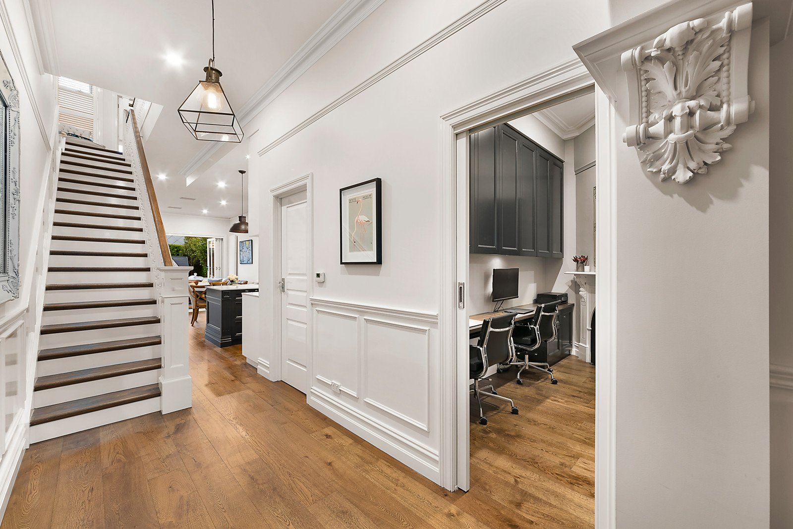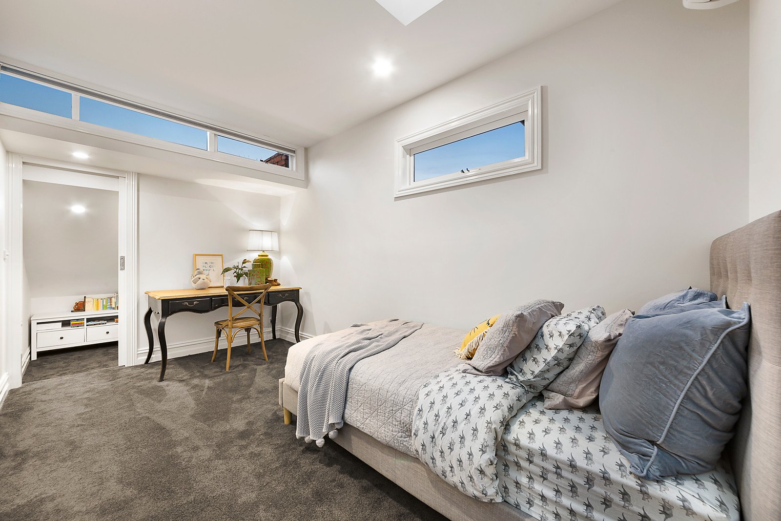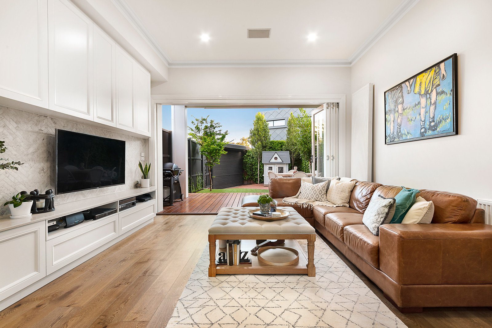 Brilliantly renovated and extended, this captivating 1910 solid brick Edwardian residence's unforgettable dimensions are matched by an equally compelling lifestyle location walking distance to the beach, Gasworks Park, Albert Park Village, trams, and both Albert Park Primary & Albert Park College. A designer palette of wide oak floors, herringbone marble and bespoke joinery reflects the elite standards employed throughout. Introduced by a sizeable arched entrance hallway, the elegant sitting room / fourth bedroom and superbly fitted home office both feature open fireplaces. The sublime gourmet kitchen boasting stone benches effortlessly flows to a generous open plan living room leading out through bi-fold doors to a large covered deck & landscaped garden with off street parking via a rear lane. Upstairs, the beautiful main bedroom featuring a balcony, walk in robe & designer en suite is accompanied by two gorgeous bedrooms each with a large walk in robe/playroom and a stylish shared bathroom. Comprehensively appointed with an alarm, hydronic heating, RC/air-conditioners, audio wiring inside and out, chic downstairs bathroom, two laundries, outdoor heaters and Velux sky-lights.