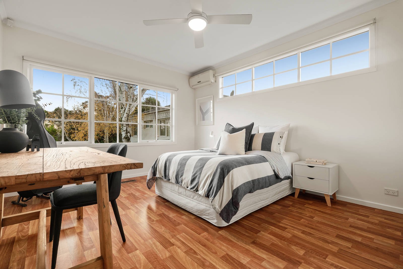 The immaculately maintained interior features polished timber floors through the entrance hall leading to a formal sitting room with OFP and bay window, adjacent dining room, two front bedrooms and a pristine family bathroom. A generous family living and dining room includes a sleek, central kitchen equipped with stone bench-tops, prestige Platinum stainless steel appliances; plus an adjacent laundry/bathroom and rear double bedroom. All flowing to a rear deck overlooking an easy-care rear garden framed by Silver Birch trees - perfect for indoor/outdoor entertaining. Other features of this marvellous family home include alarm, ducted heating, R/C air conditioners, former single garage/storage or potential games room, auto front gate and off-street parking.