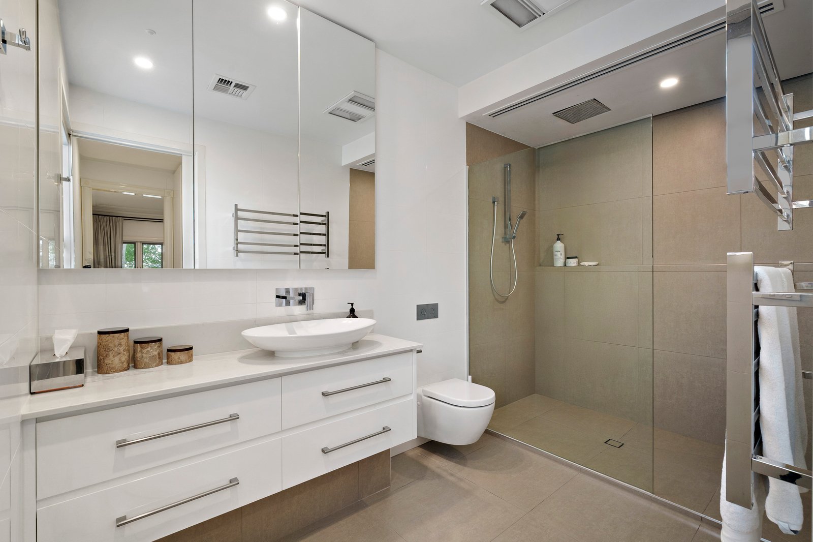 Upstairs, the primary bedroom suite includes a walk in robe, luxurious ensuite and a north facing undercover balcony that captures leafy streetscape outlooks. Two additional bedrooms with built in robes are served by an elegant family bathroom. Heated towel rails, ducted heating and cooling, a powder room, dedicated laundry, ducted vacuum, security system, garden irrigation and a two car garage are a few of the additional benefits on offer, in this superb location only one block from the Bay Trail.