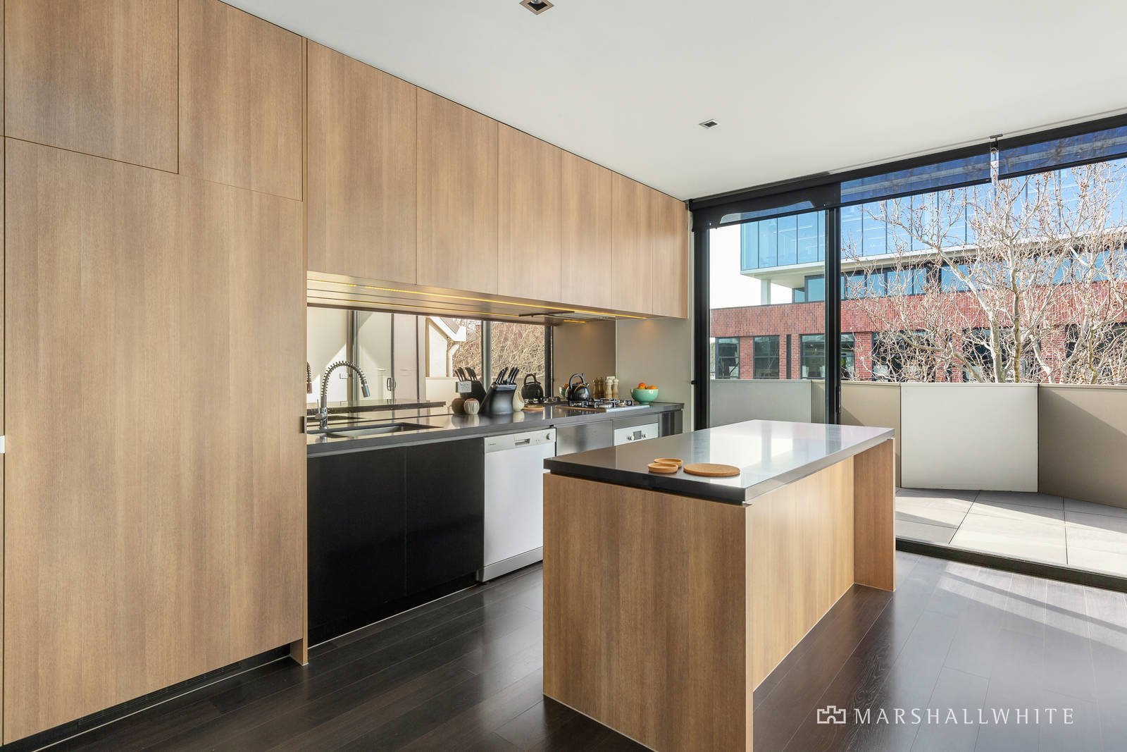 Perfectly on trend and yet certain to endure, an upstairs living area presents an evocative blend of dark stone benches, stainless steel appliances and rich timber-toned flooring, all with a relaxed flow to a generous balcony, whilst the open study area has been completed with a substantial built-in desk. Both the main bedroom's ensuite and the central bathroom are strikingly tiled showpieces, plus there are built-in robes in each bedroom, secure video entry, basement parking for two vehicles and storage, as well as split system heating and air conditioning.