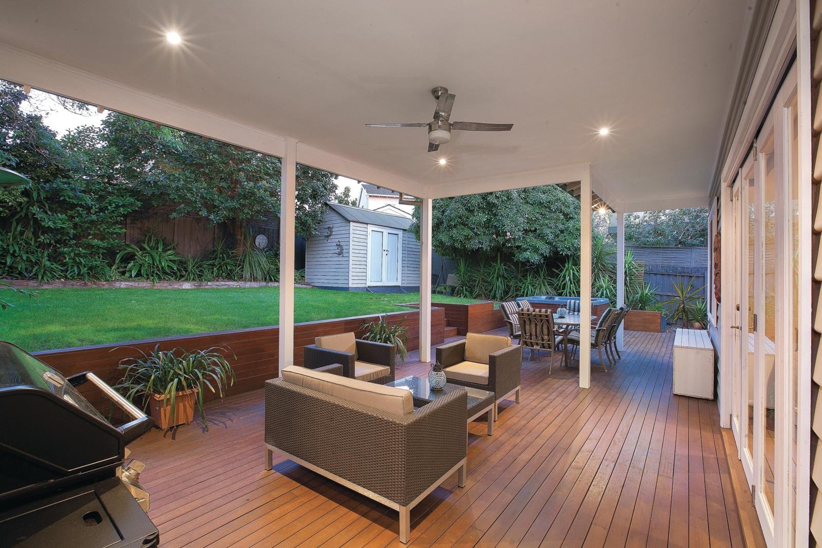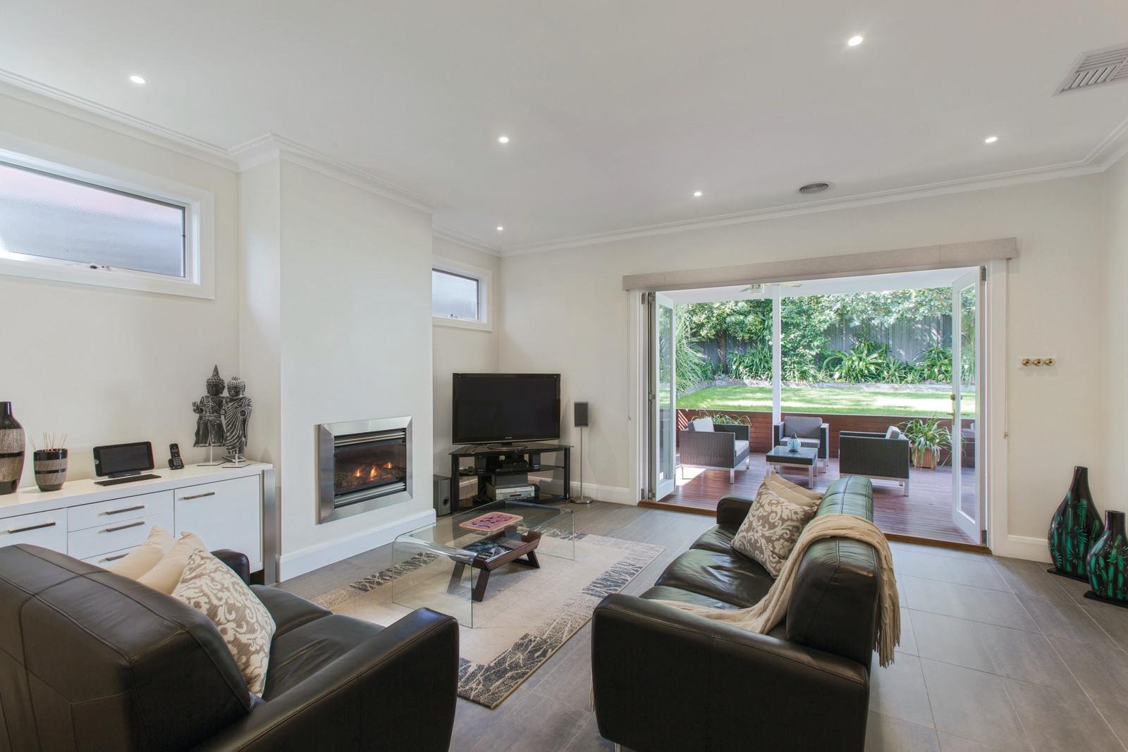 Wonderful period allure has been seamlessly blended with sleek contemporary style to create an inviting ambience through every well-proportioned light-filled room. The wide Baltic pine central hall introduces a stunning sitting room with open gas fireplace, gorgeous main bedroom with built in robes and a designer en-suite. In a separate wing there are two further bedrooms with built in robes, a playroom or study, and a second stylish bathroom. The generous open plan living (gas fireplace), dining room and streamlined gourmet kitchen featuring Smeg appliances and stone benches, opens fully through bi-fold doors to reveal a fabulous covered outdoor entertaining precinct. Outdoors includes a spa overlooking the deep private northeast facing landscaped garden.