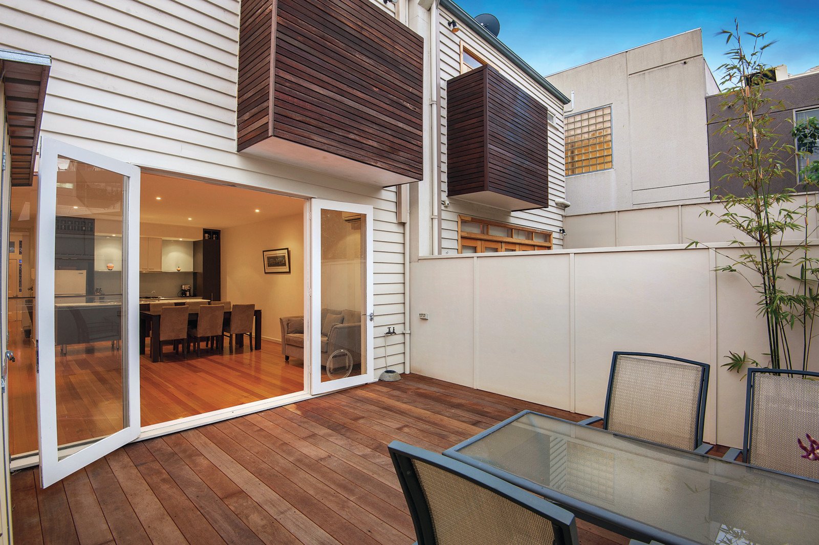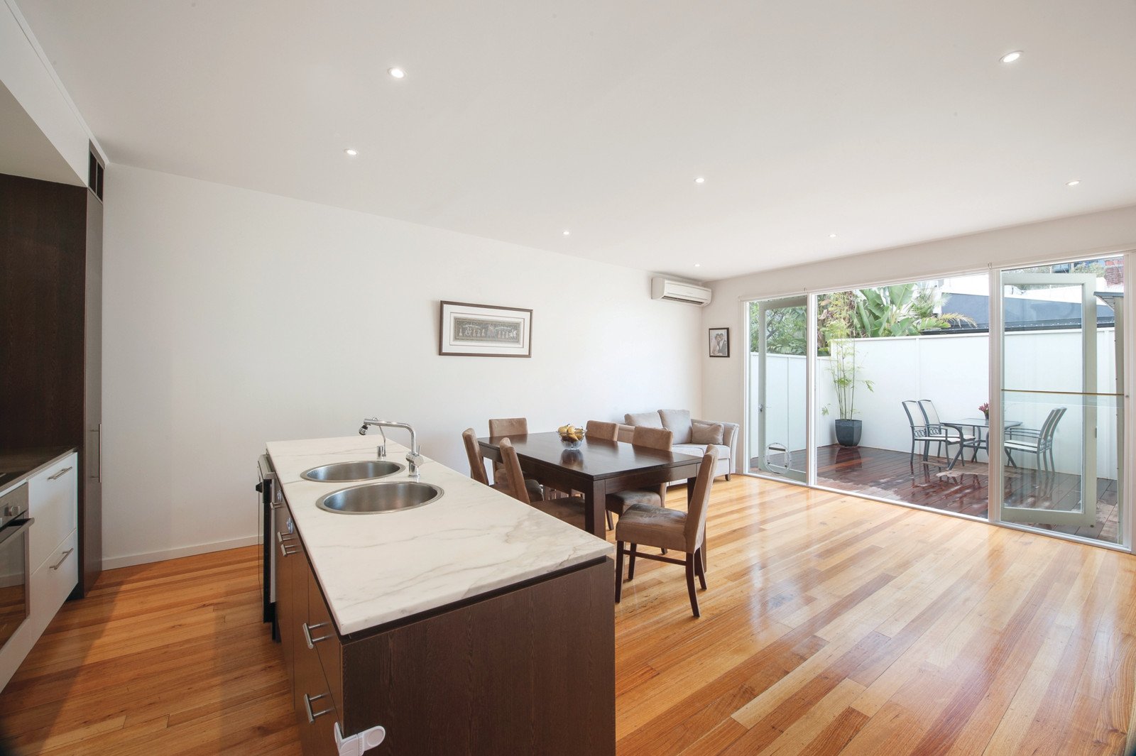 Period charm is superbly blended with contemporary style through the timber entrance hall, beautiful sitting room with gas fireplace/3rd bedroom, gourmet kitchen boasting marble benches and European appliances and a generous living and dining room that opens out to a sunny decked courtyard. Two bright double bedrooms with built in robes, north-facing balcony and bathroom/en-suite upstairs are complimented by a second chic bathroom downstairs. Perfect to just move in and enjoy, it also includes 3xRC/air-conditioners, security intercom, Euro-laundry and storage shed. Please note: Enter off Stead Street.