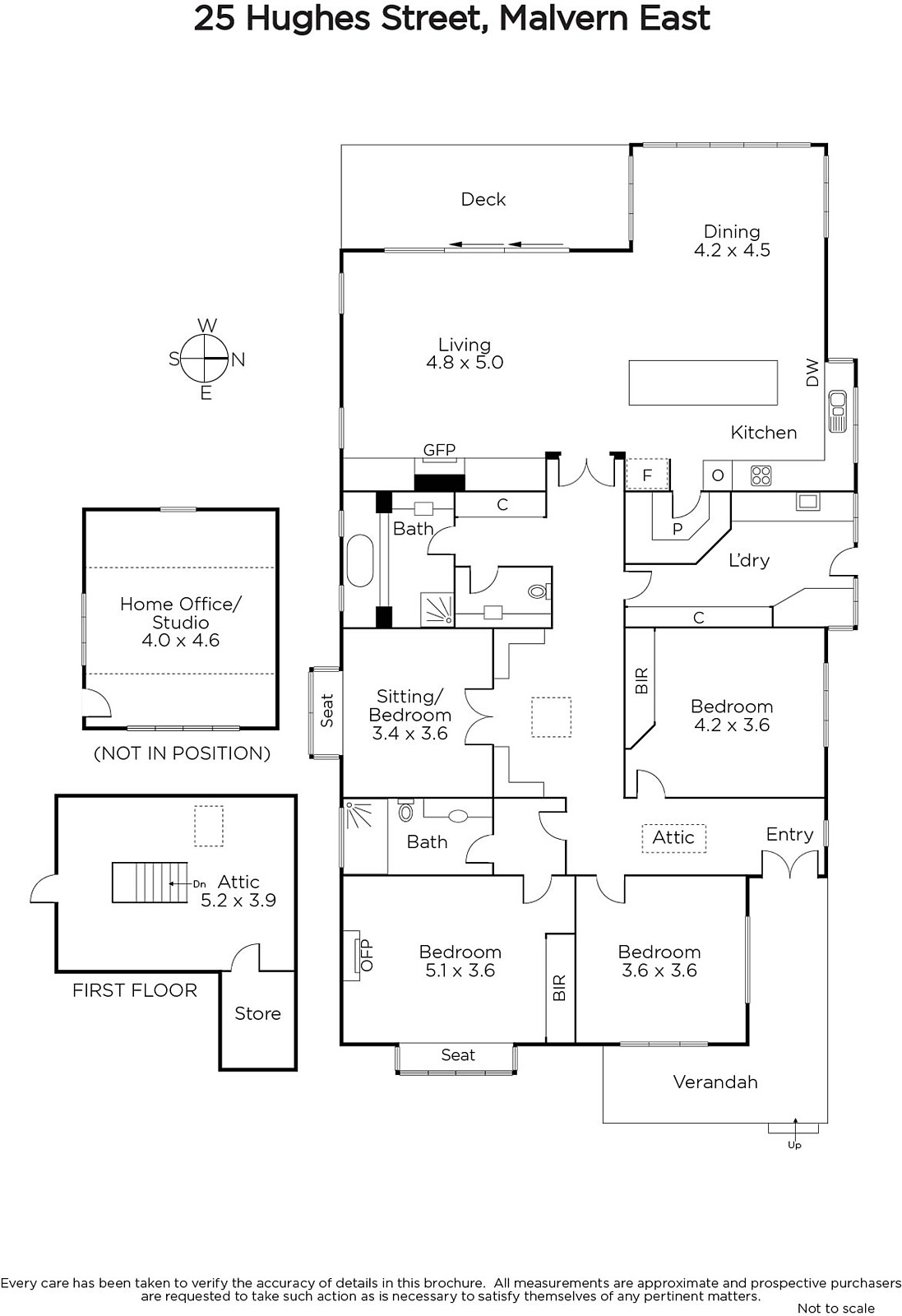 Solid timber floors, high ceilings and leadlight windows feature through the wide L-shaped entrance hall leading to a fabulous sky-lit gallery and sitting room/fourth bedroom. The beautiful main bedroom is serenely set on its own with an open fireplace, window seat, built in robe and designer en-suite. Two additional well proportioned and bright bedrooms are accompanied by a stylish bathroom with separate powder-room. Timber floors flow through the generous living and dining room with a sublime gourmet kitchen boasting stone benches, Miele appliances and a brilliant walk-in pantry. Sliding doors open out to a wide covered deck overlooking the private leafy northwest garden with freestanding home office or studio with mezzanine storage.