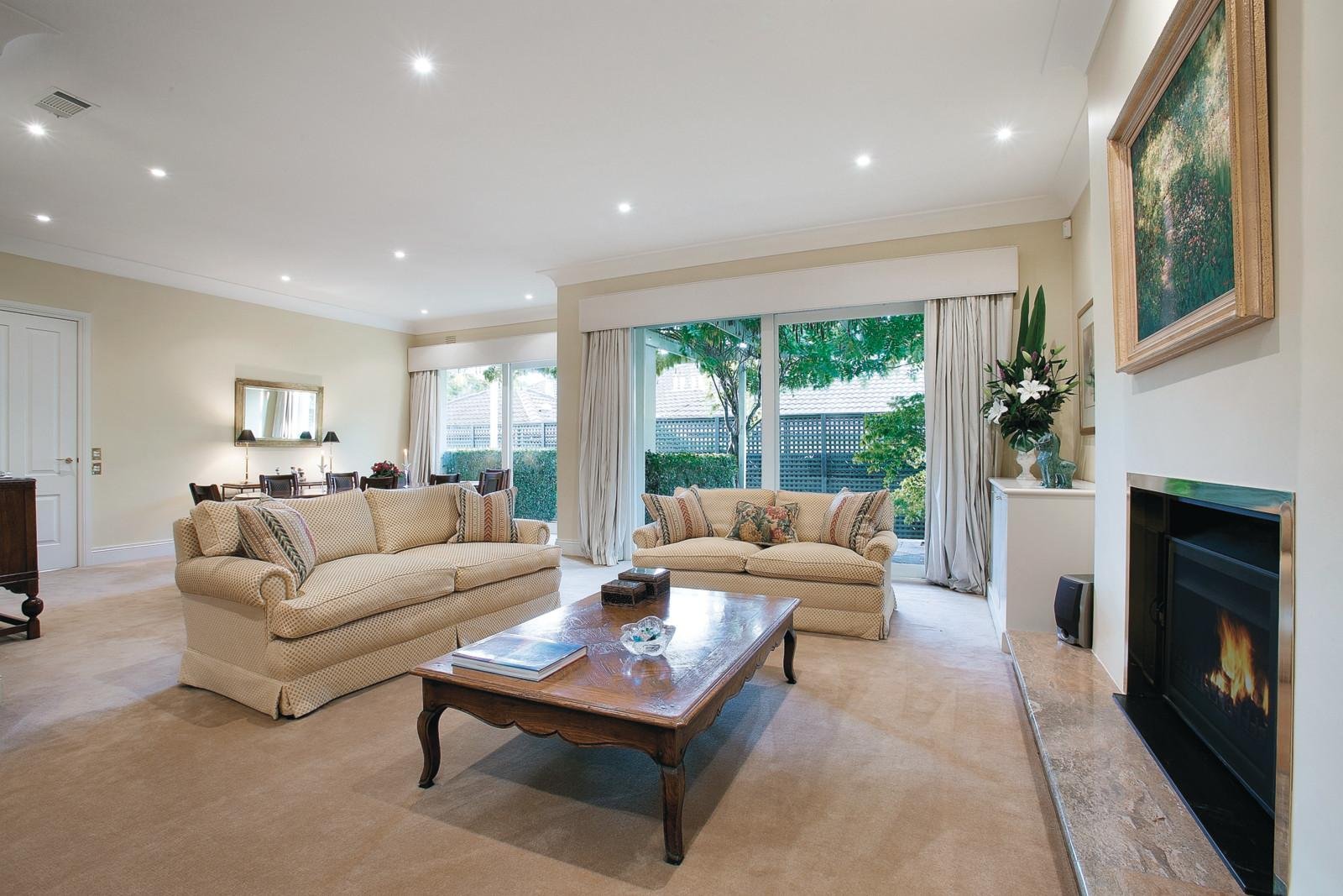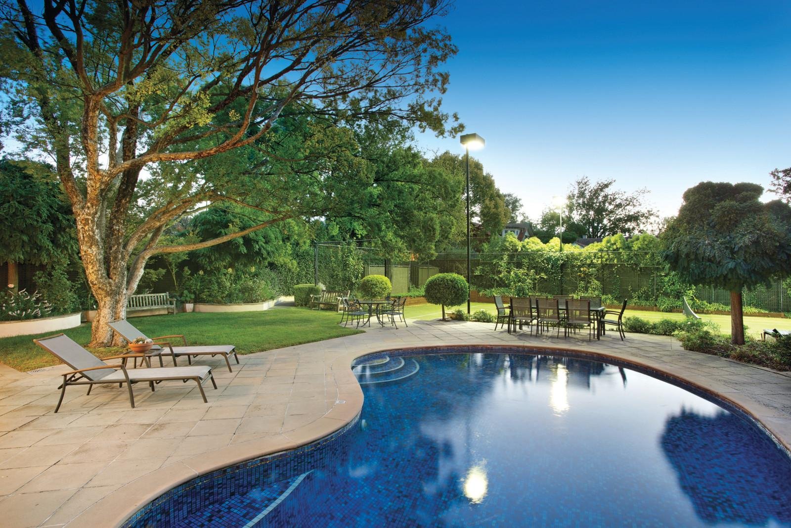 Impressive dimensions, parquetry floors and plantation shutters highlight the classic refinement conveyed through the wide reception hall, fitted study and expansive formal sitting and dining rooms with open fireplace opening out to a quiet and private, expansive north-facing garden, perfect for entertaining on any scale. The beautiful main bedroom with lavish marble en-suite and walk in robes is matched by a second bedroom with marble en-suite and built in robes, two further bedrooms and a third bathroom. The imposing scale is continued through the superbly appointed Miele kitchen with walk-in-pantry, adjacent casual dining room and the sensational light-filled living room with open fireplace opening out to a picturesque landscaped northwest garden with tennis court and heated pool.