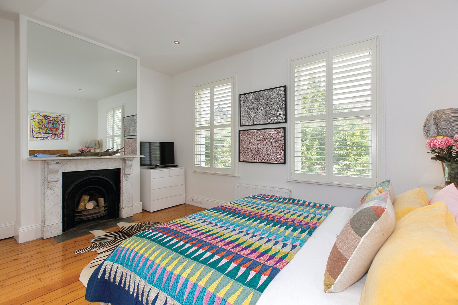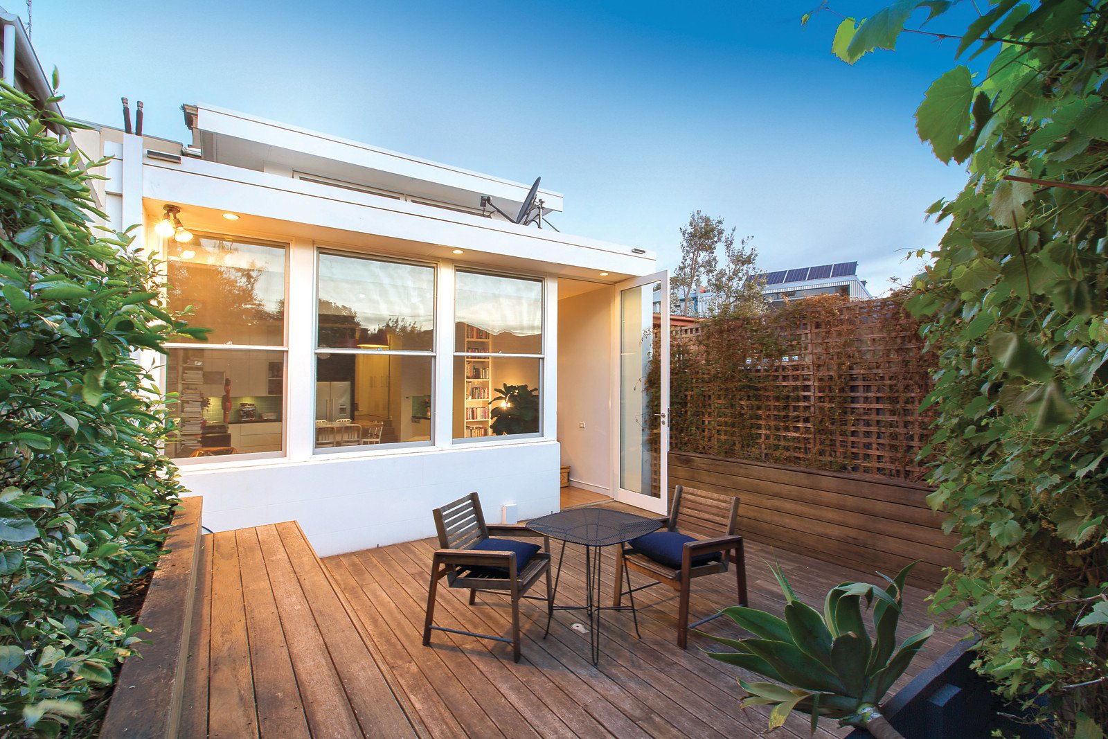 Evocative period features including high ceilings and Baltic pine floors distinguish the arched hallway leading to a beautiful sitting room or 4th bedroom with marble open fireplace. The striking extension boasting recycled oak floors and a soaring ceiling with clerestory windows houses the stylish kitchen with 90cm Ilve oven and light-filled living and dining room extending out to a private northwest decked courtyard, ideal for entertaining. A double bedroom with open fireplace and sleek bathroom are downstairs while a captivating main bedroom with marble open fire and built in robes, 3rd bedroom with open fire and chic bathroom are upstairs.