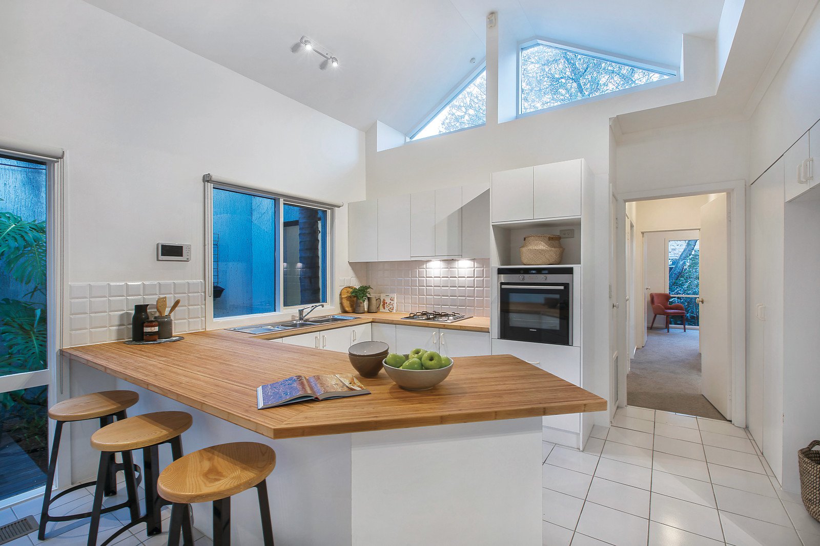 Privileged position literally moments from Church St shops and restaurants, the beach, elite schools and Middle Brighton station, this superbly presented contemporary residence's intelligent design provides light-filled, low maintenance lifestyle appeal in an enviable single level context. Vaulted ceilings accentuate the sense of space and natural light in the exceptionally generous formal sitting and dining room overlooking a north-facing side garden. The soaring ceilings continue through the casual living and dining room and the superbly appointed modern kitchen which opens to both a private deck and to the surrounding leafy northwest garden. The main bedroom with built in and walk in robes and an en-suite is matched by a second double bedroom with built in robe and stylish bathroom, third bedroom or study with walk in robe and separate powder room. Offering ideal lock up and leave living, it also includes an alarm, video intercom, powder-room, laundry, ducted vacuum and internally accessed double garage.