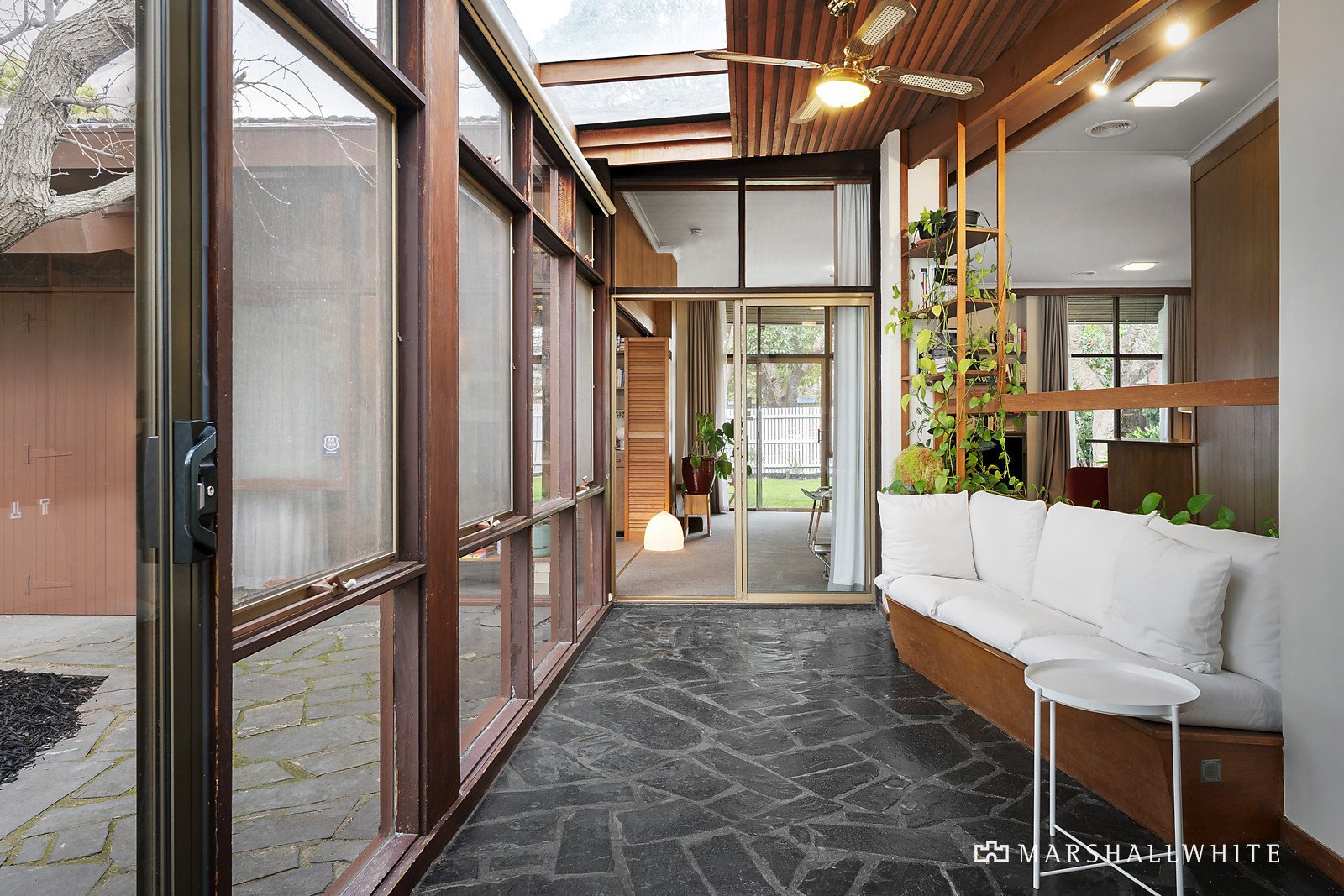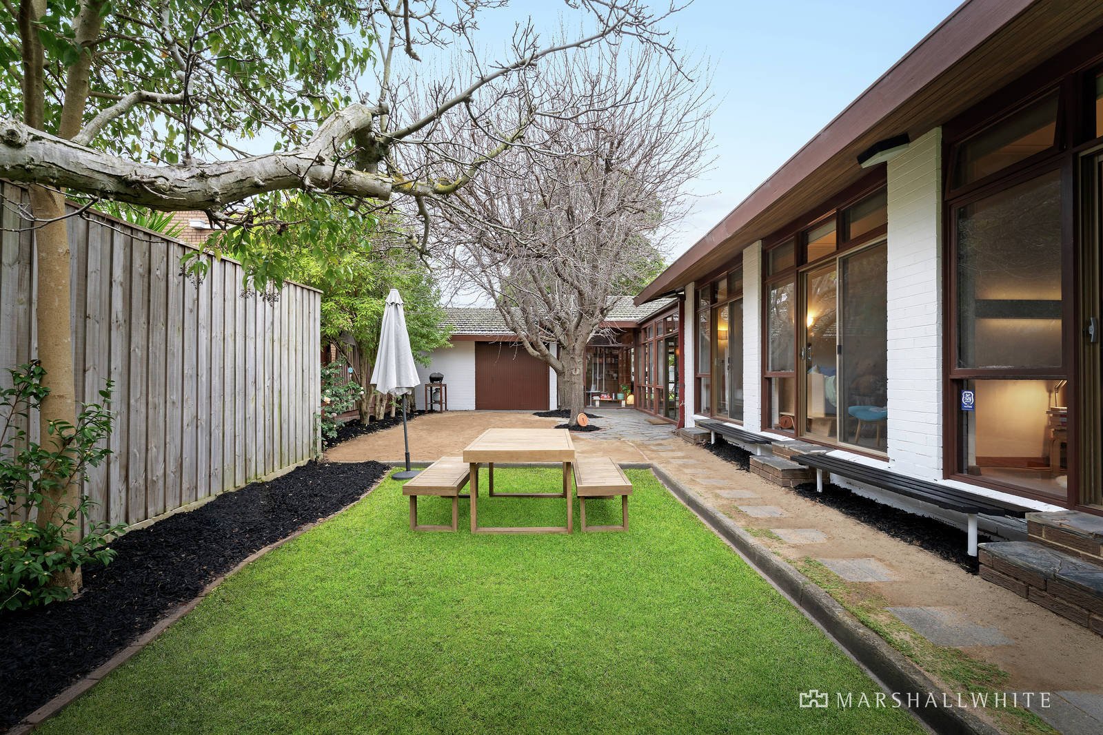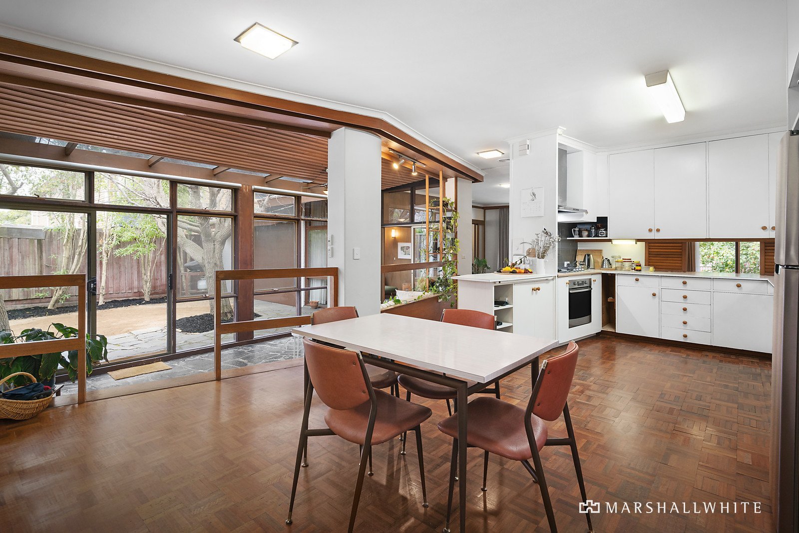 Iconic Mid-Century design and 650sqm of land (approx.) are ready for an exclusive future, with Elsternwick Park at the top of the street, the beach close by, and Martin Street's cafes, bars and shops just blocks away. Architect Daniel Meszaros designed this single-level home to make the most of the north-facing orientation, with seamless indoor-outdoor living and sunlight in every room. It's rich in 1960s innovation, including big windows and a bar in the entertainer's lounge, a slate-floored living zone where you can curl up on the built-in sofa and look out to the landscaped garden, and a study featuring custom-made cabinetry. Contemporary updates have enhanced the ensuite and bathroom, all three bedrooms open onto the garden, and the kitchen includes a home office hub and Bosch and Westinghouse appliances. Passive solar design creates winter warmth and summer shade, and established trees and a wall of flowering greenery on the west-facing boundary are garden highlights. Retain and renovate this easy-care home or start again with a new vision (STCA) in sought-after Foote Street, where schools are close by, public transport is easily accessible, and you're around the corner from New Street's food stores and cafes.