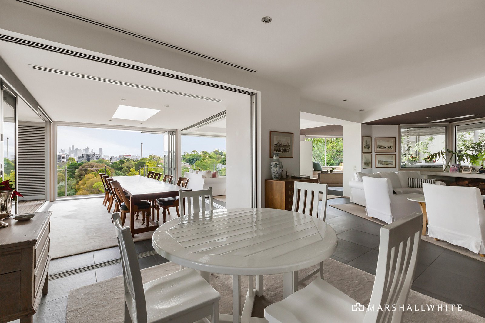 A triumph of space and light dominates this timeless multi-level family residence with an expansive floor plan and glass walls opening to the spectacular gallery-like interior over three levels. With the top level featuring zoned living areas including an outdoor sitting room with OFP introducing a reading alcove leading to the summer living room with bi-fold doors to the wrap around balcony, winter living room with OFP and stylish kitchen equipped with a suite of prestige Miele appliances and Liebherr integrated frig/freezer, WIP and sunny adjacent garden; plus a main bedroom with dressing room, ensuite and powder room. The second level has two further bedrooms with WIRs and two ensuites, a study or home office, laundry and balcony with views - perfect for indoor/outdoor entertaining. The third and lower level is a self-contained apartment with an open-plan living with study alcove, dining and stylish kitchen opening to a balcony with views plus one bedroom and a bathroom/laundry. Other appointments include an alarm, ducted heating heating/cooling, limed timber woodwork, electric wall heaters, remote double garage with secure garden access.
